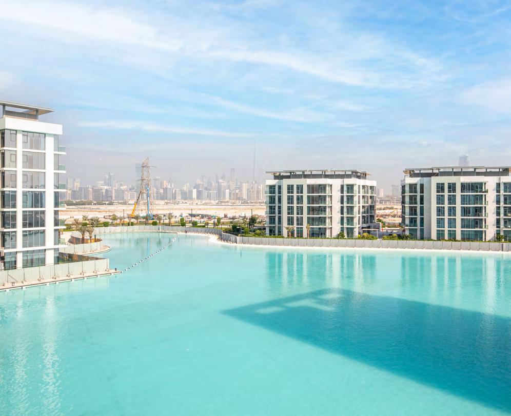 District One of Mohammed Bin Rashid Al Maktoum City is located in Nad al Sheba, directly adjacent to the Meydan Grandstand. District One residents will be able to enjoy a quiet neighborhood atmosphere while being just minutes from the center of the city. One of the most striking features of District One is the large body of water using Crystal Lagoon technology, making it effectively the largest swimming pool in the world. Gardens, sports and recreational areas spread throughout the development and invite a healthy lifestyle for all those within.