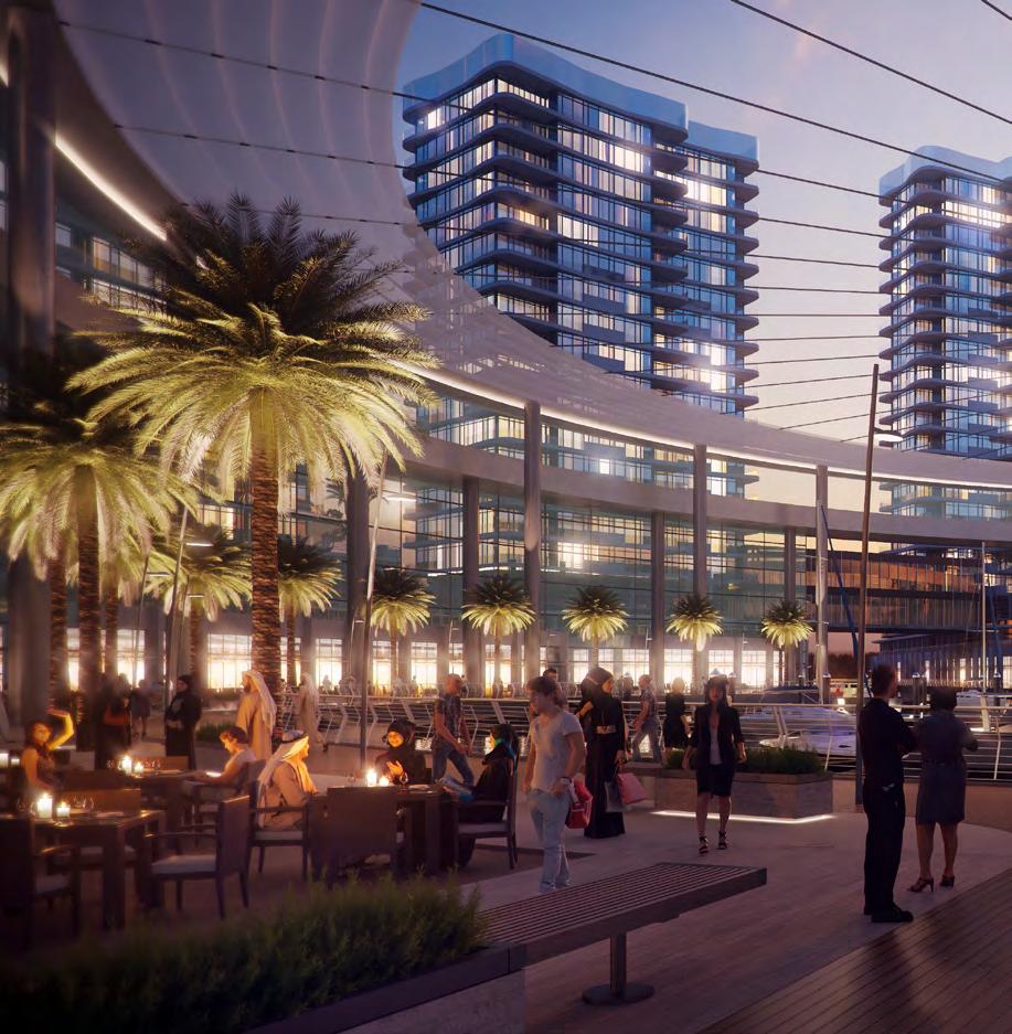 Various green networks are incorporated into in the development’s design. These networks allow pedestrians complete autonomy from vehicular traffic. The green networks connect through the parks, residential buildings, shopping, and boardwalks and also flow onto and through buildings and above vehicular routes to create a truly unique destination experience.
