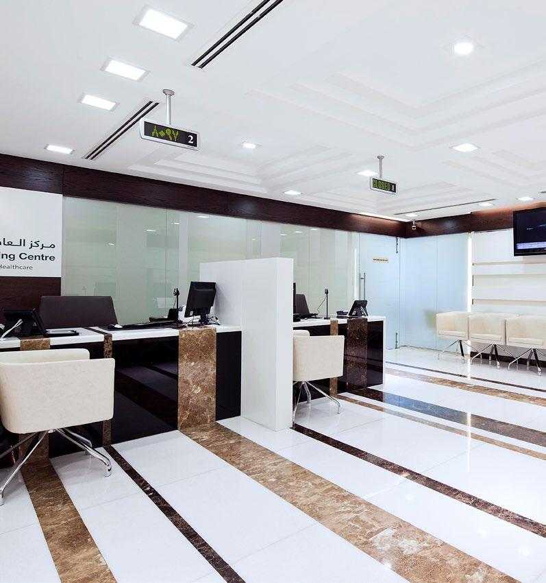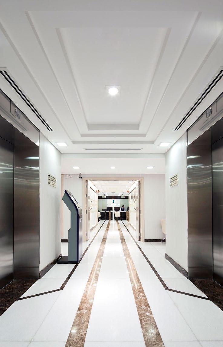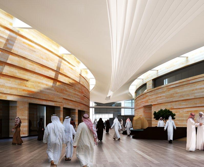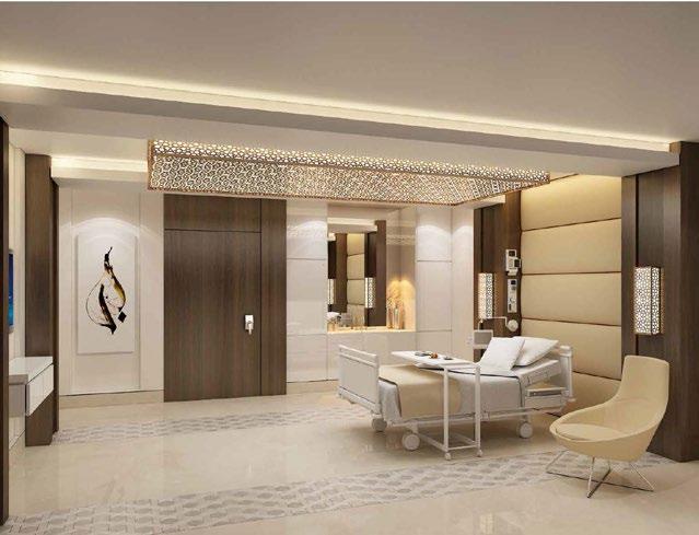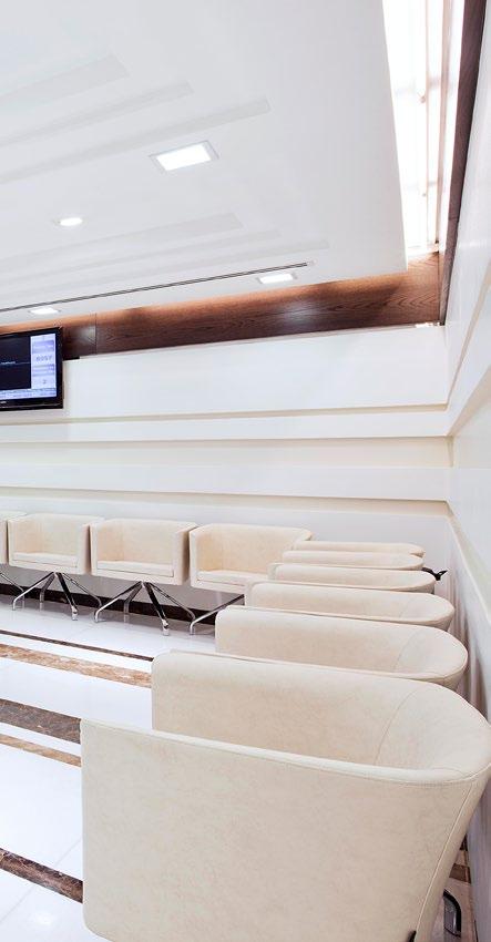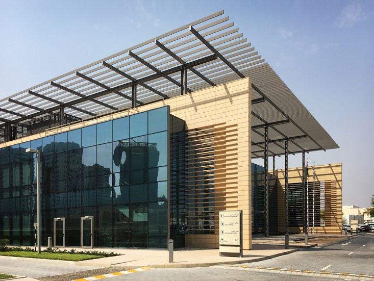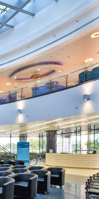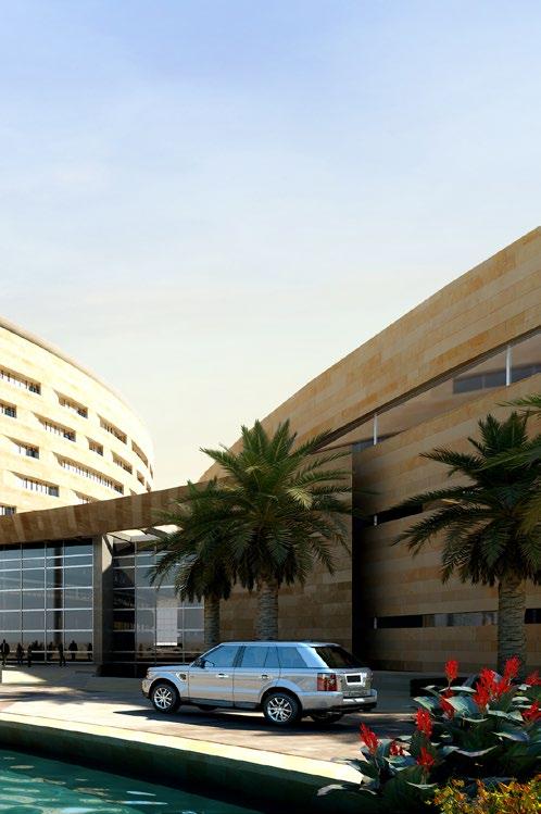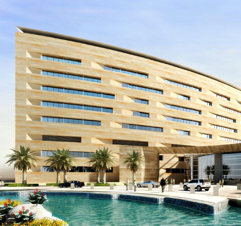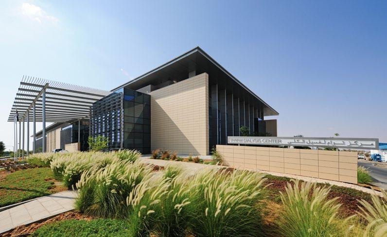 The Al Mafraq Dialysis Center is thoughtfully integrated - from the building’s architecture and exterior landscape to the interior finishes and mechanical systems. The building is organized around dialysis treatment “pods,” which are strategically positioned on each side of the building’s core. With a patientfocused design, this 7,400-square-meter world-class facility features 68 dialysis treatment stations with therapeutic chairs, flat screen televisions and outdoor views. Dynamic metal and glass sunscreen shields provide natural light while still protecting patient privacy.