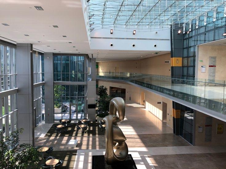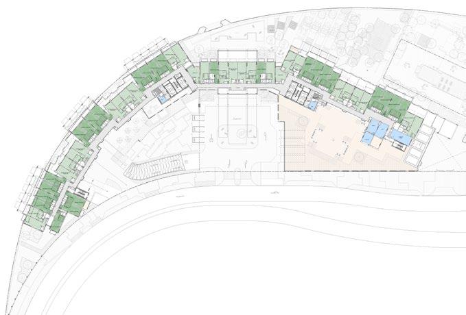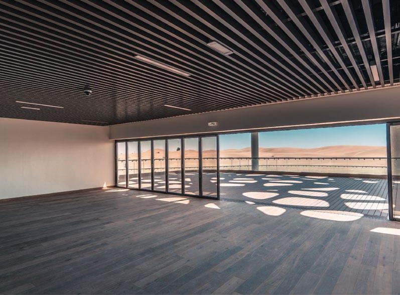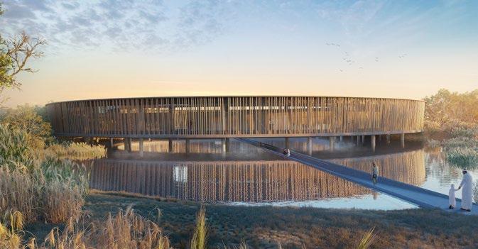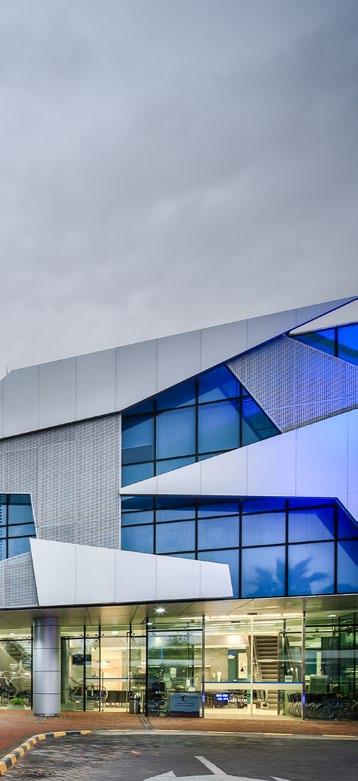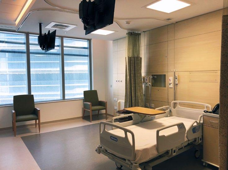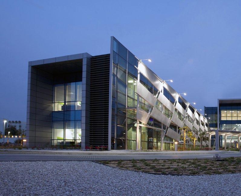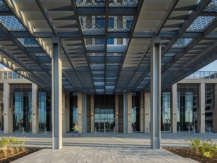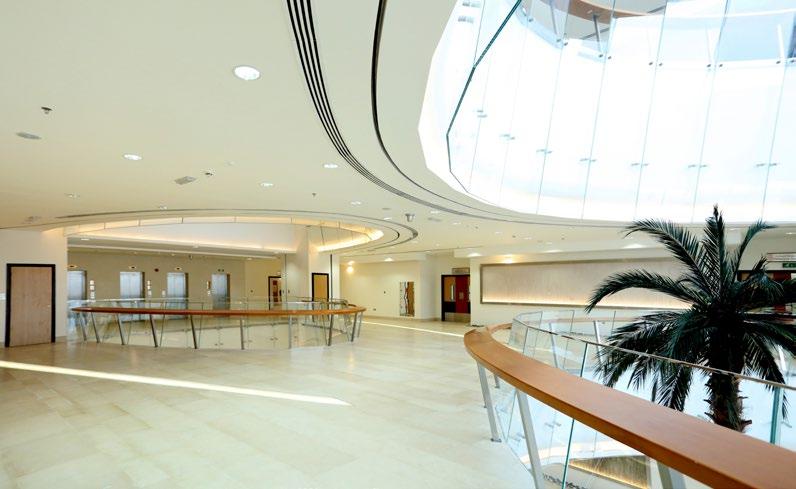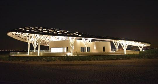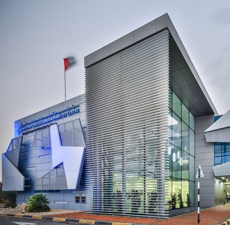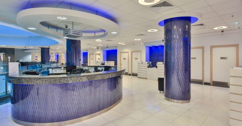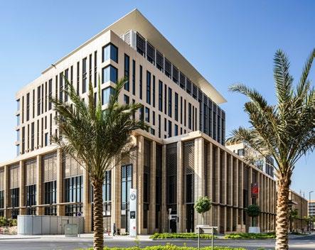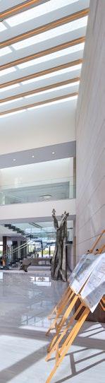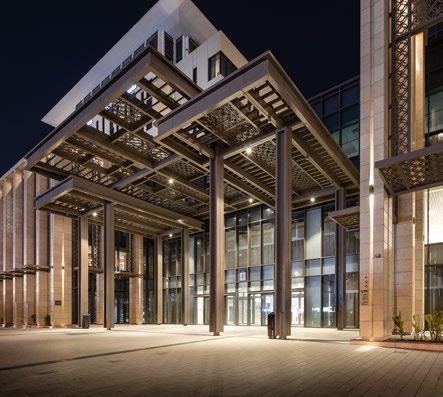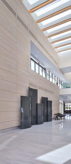 The Al Mafraq Dialysis Center is thoughtfully integrated - from the building’s architecture and exterior landscape to the interior finishes and mechanical systems. The building is organized around dialysis treatment “pods,” which are strategically positioned on each side of the building’s core. With a patientfocused design, this 7,400-square-meter world-class facility features 68 dialysis treatment stations with therapeutic chairs, flat screen televisions and outdoor views. Dynamic metal and glass sunscreen shields provide natural light while still protecting patient privacy.