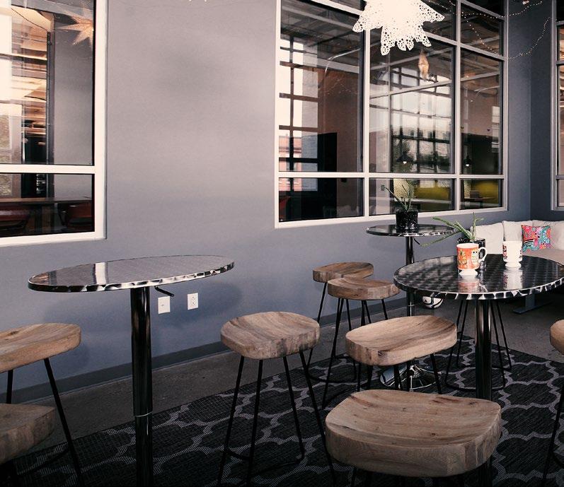 To promote collaboration and openness, AE7 introduced an atrium space with a new connecting stair and exposed masonry lookout. The open-plan office environment accommodates 60 employees and offers multiple team rooms and flex spaces to enhance the client’s collaborative workflow. The team rooms are located on the perimeter of the building maximizing staff’s exposure to natural light and outdoors.