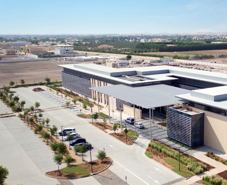 The exterior façade is comprised of a terra cotta rainscreen that relates to the vernacular Al Ain architectural style. Interior finishes, architectural and landscape design, and mechanical systems support Abu Dhabi’s LEED equivalent “Estidama,” achieving a 2 Pearl rating.