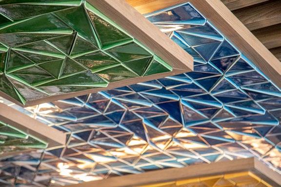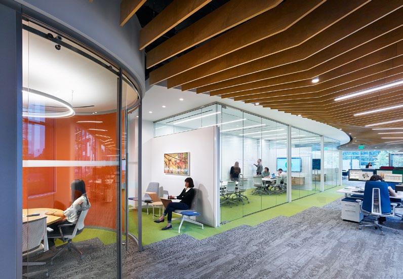 A unifying design feature is the undulating wood baffle ceiling created with parametric design software and digital fabrication. The curving spline flows through the space, threading together the zones and their functions.