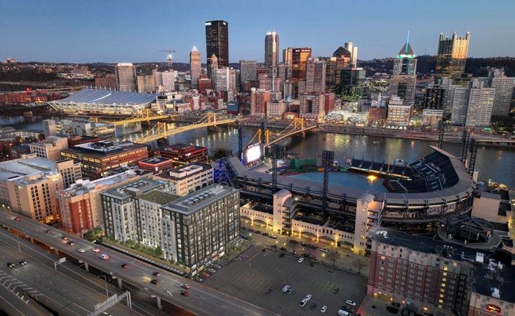 Situated in a prime location in Pittsburgh’s rapidly developing Strip District, the project is only a few blocks from the downtown core and one block from the riverfront. While the building offers variety of dynamic spaces with picturesque city and river views in a highly accessible and visible location, its design complements the existing context through its strategic use of building massing and materials. Rooted in the masonry warehouse vernacular of the surrounding Strip District, the building is contextually sited at its base and transforms to a more contemporary material palette of glass and metal on the higher floors. This helps the project speak to both the transitional nature and development of both the Strip District and Pittsburgh as a whole.