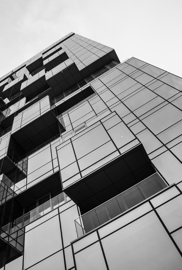 The design of the exterior façade took into consideration the context of a prominent corner of East Liberty to create a visually striking building. The building facade features a large expanse of glass to maximize views.