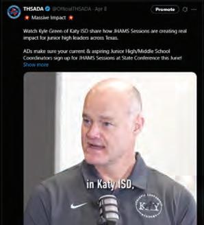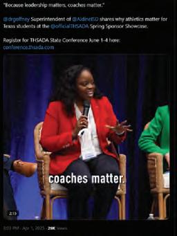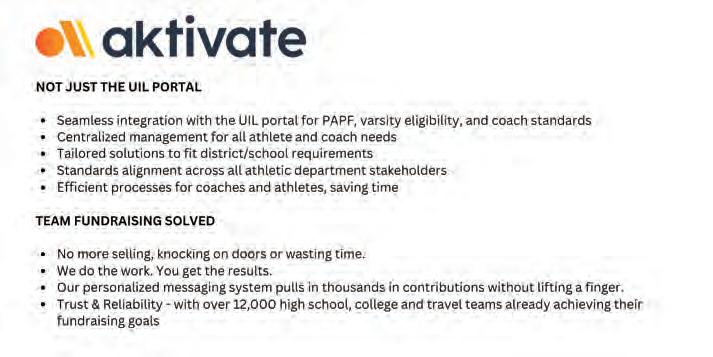 Iwould like to take this opportunity to thank all of our sponsors and exhibitors for their continued support of the Texas High School Athletic Directors Association, as well as the student-athletes and coaches in the State of Texas.
