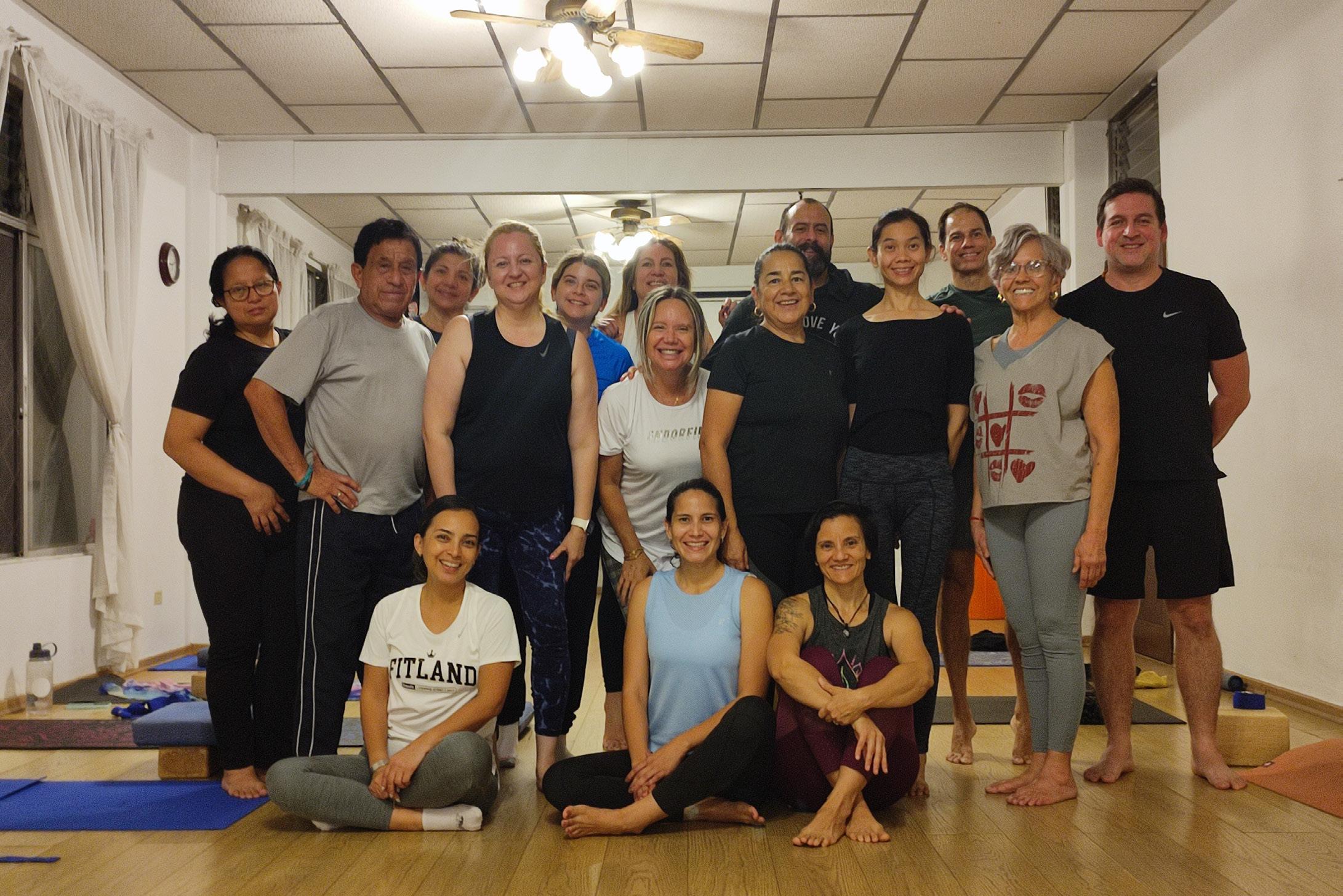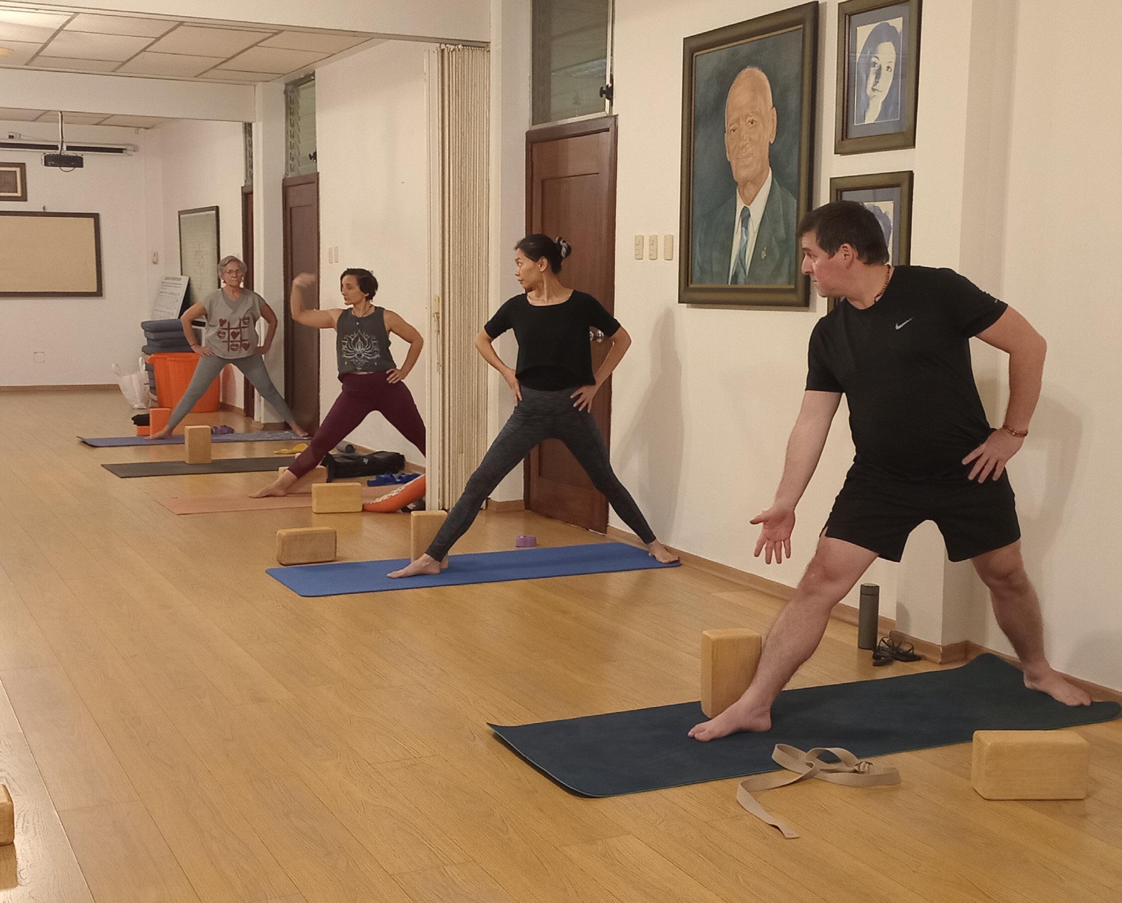 Los ejercicios de energización número 13,14 y 15 por Giovanny Martínez y de Hatha Yoga, “Uthita Trikonasana” (triángulo) escrito por nuestro Instructor de Hatha Yoga Stephen Brown.