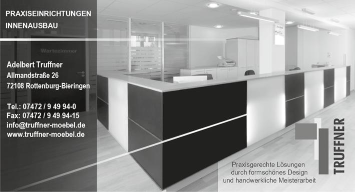 Räume für Praxis (140 oder 274 m² Nutzfläche) und/oder ambulanten OP (125 m² Nutzfläche) im Bodenseenahen Allgäu ab Frühjahr 2023 von Privat zu vermieten. Tiefgaragenstellplätze und Parkplätze vorhanden. Zuschriften erbeten unter ÄBW 15037 an den Gentner Verlag, PF 10 17 42, 70015 Stuttgart oder per E-Mail an chiffre@aebw.de