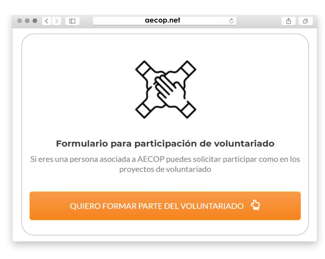 A continuación, te dejamos los formularios para participar en los proyectos de Aecop Solidaria como voluntario. Te recuerdo que las horas invertidas en esta iniciativa altruista son reconocidas para certificarte en AECOP, aunque no estén remuneradas.