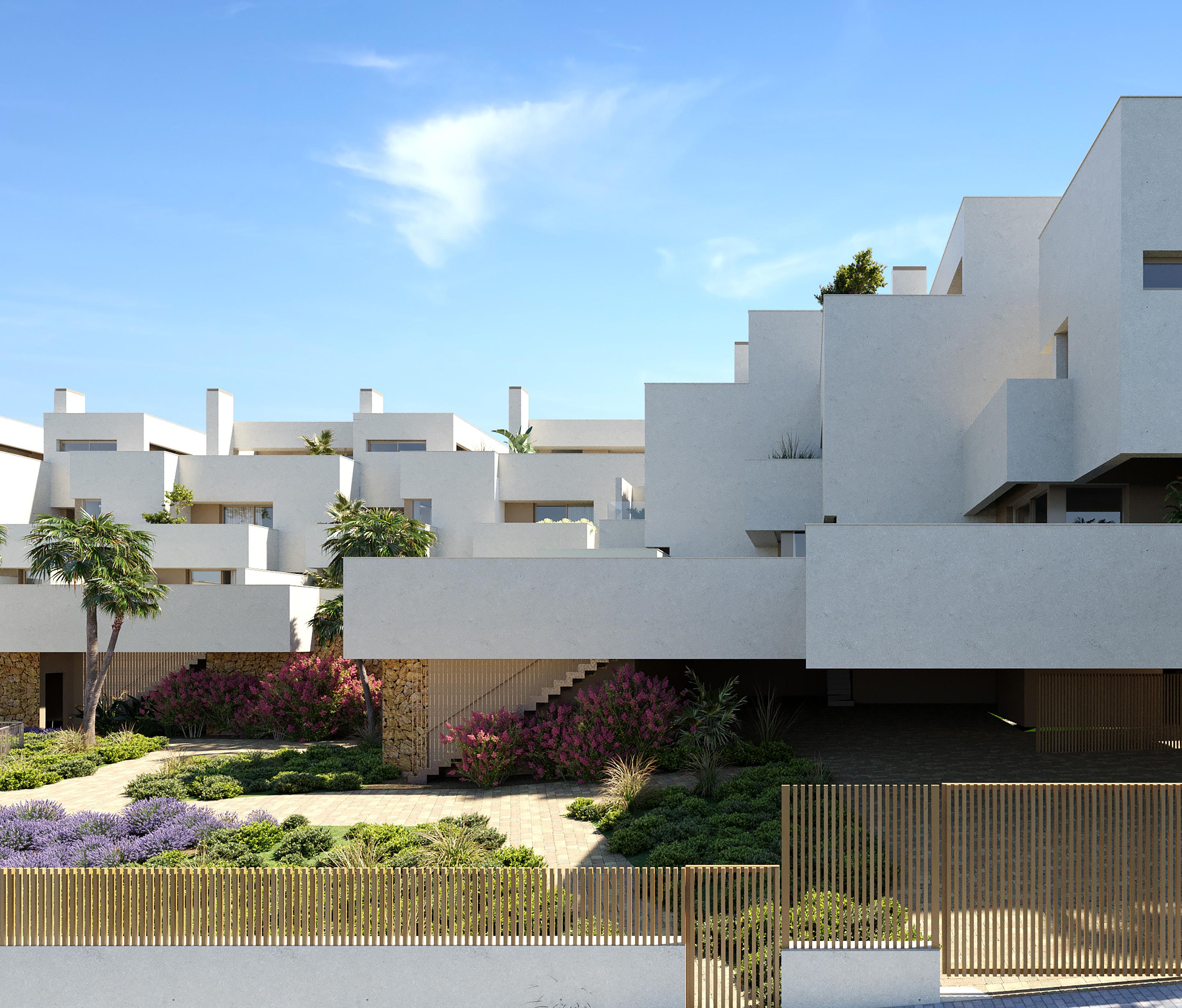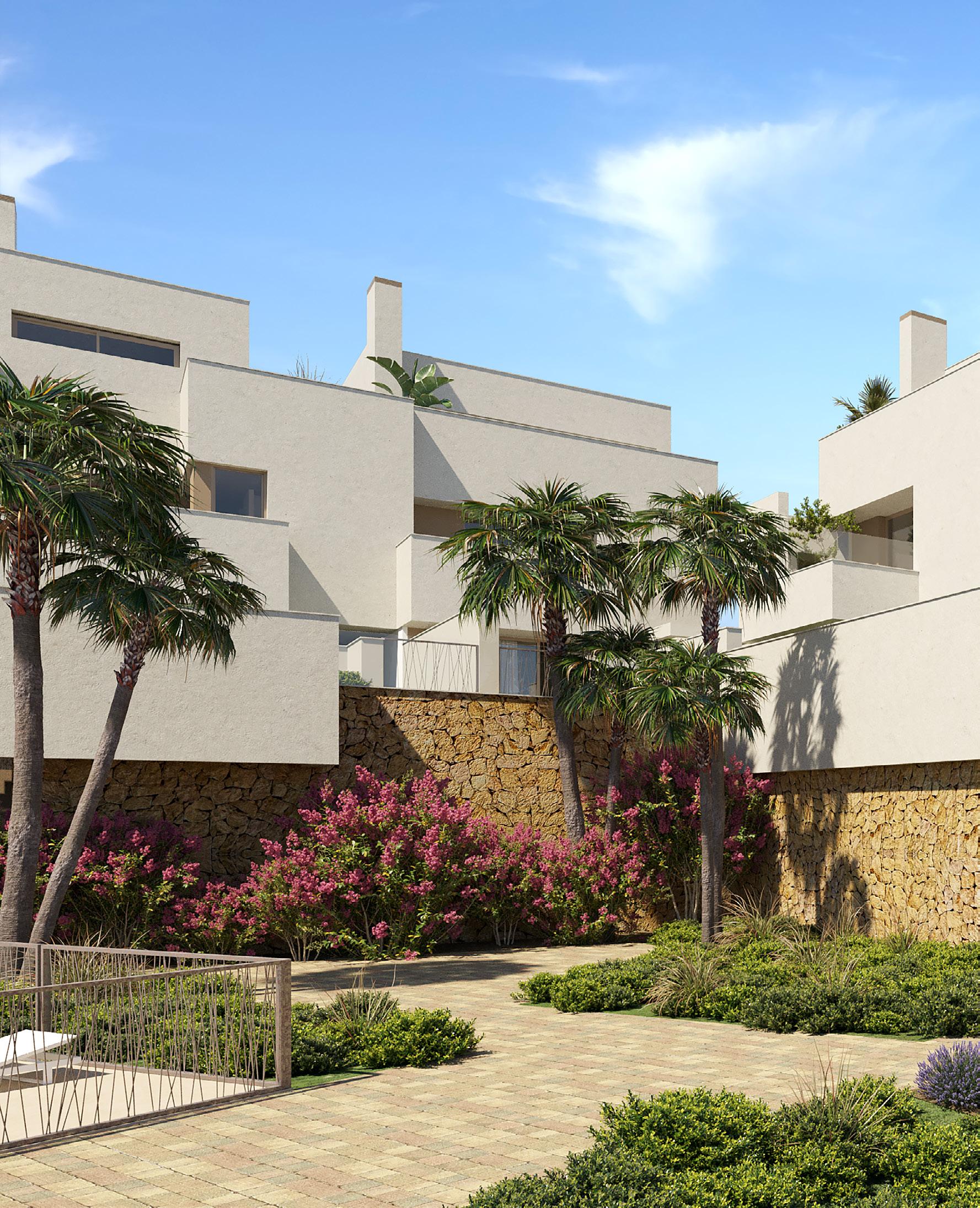 The homes in Arialtis are conceived as townhouses in a setting offering all the advantages of the city and next to the sea. Unique, exclusive homes that share magnificent Mediterranean gardens, a swimming pool and accesses.