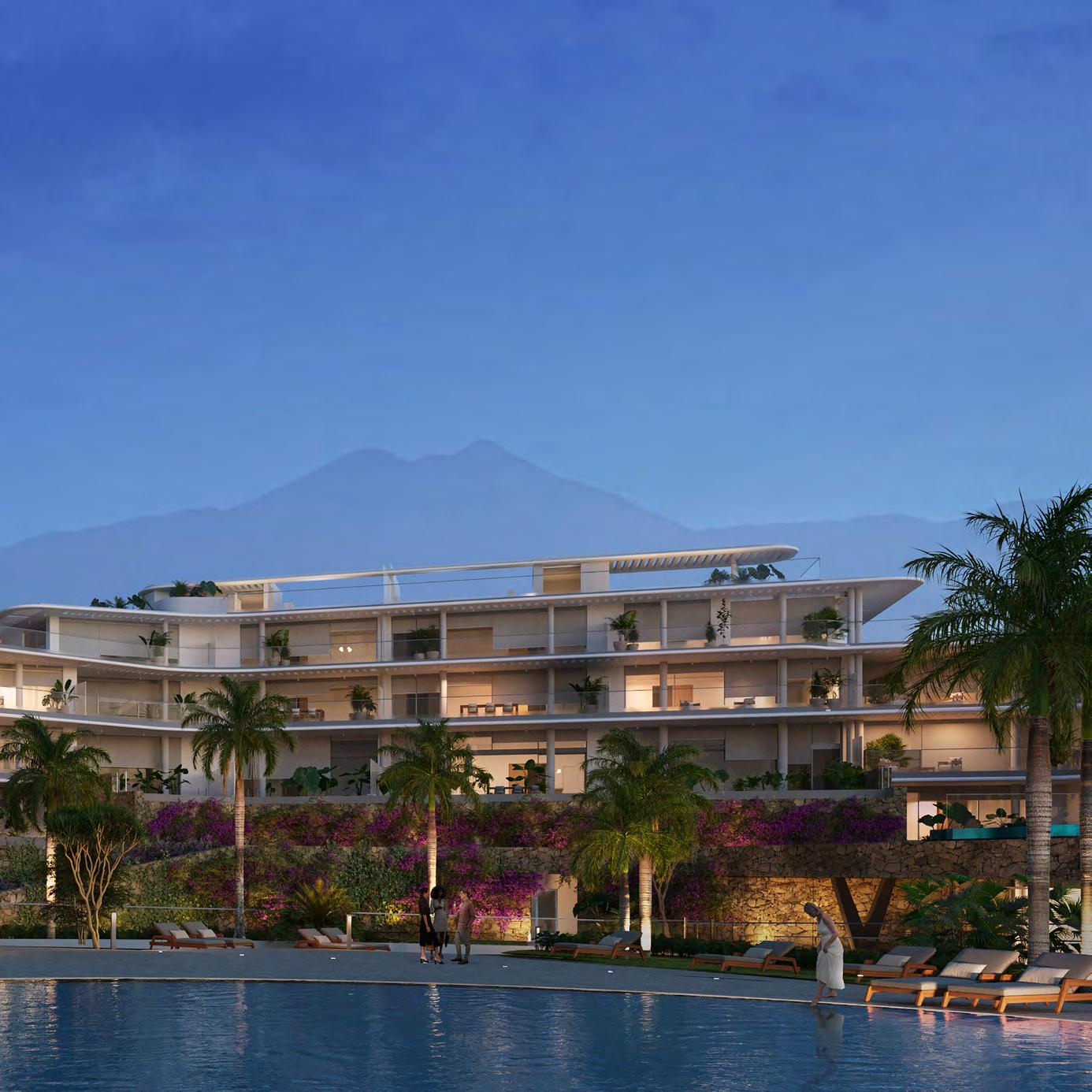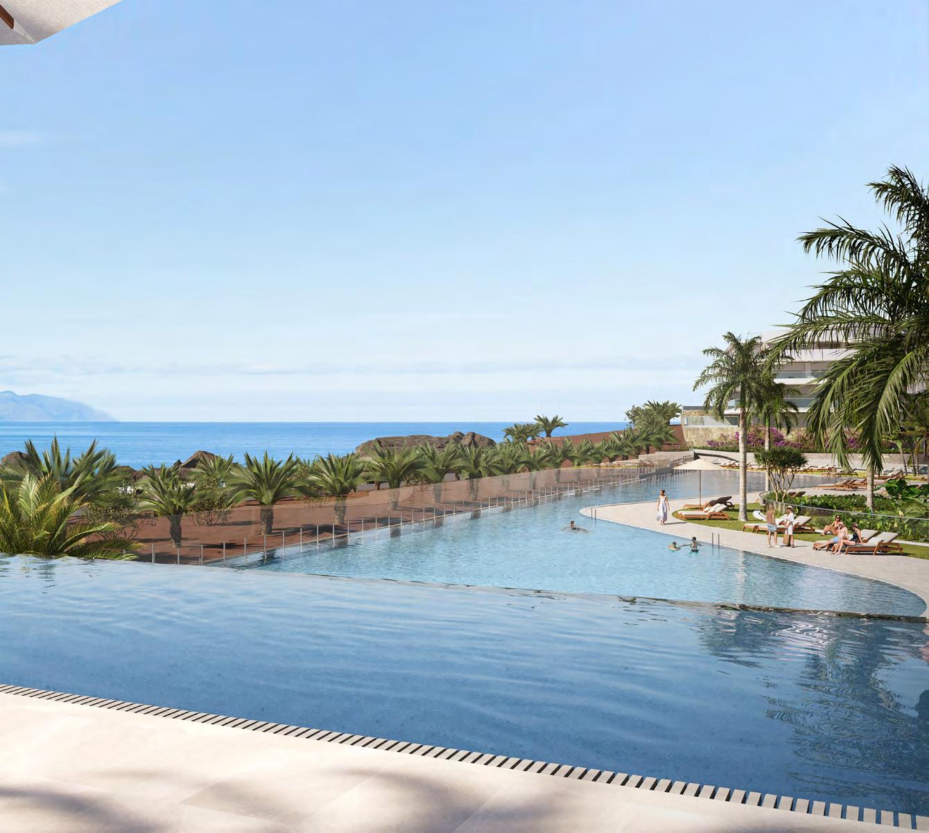 The complex will have a community infinity pool, facing the ocean and La Gomera, with a water surface of over 1,400 m2 which will be surrounded by a large sunbathing terrace for the enjoyment of residents.