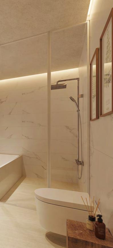 Most of the master bathrooms will include both bathtub and shower. The shower floor will be a continuation of the rest of the bathroom and will have single lever tap.