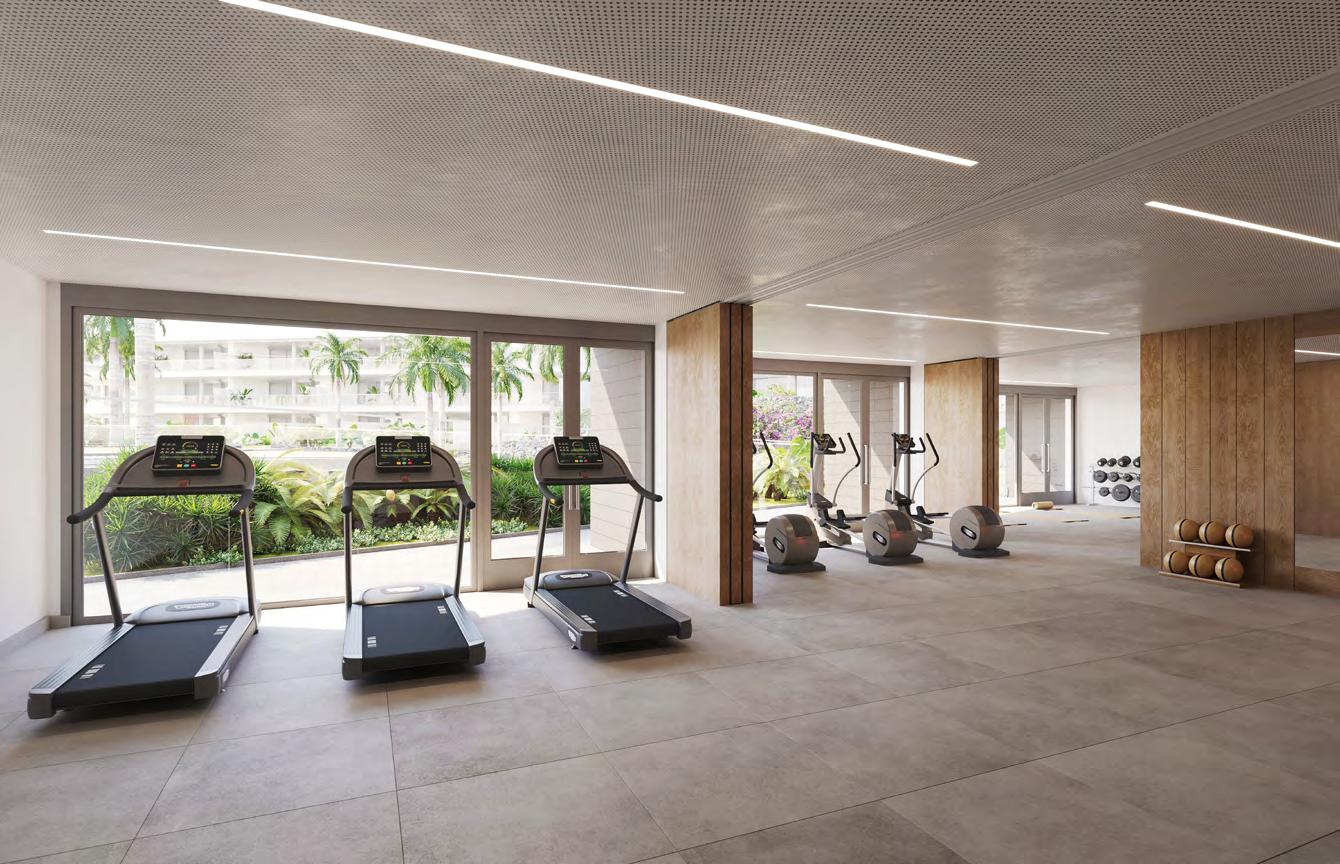The Wellness Area will have a concierge station, a gym with cardio and weight-training equipment, a thermal space including a sauna and a steam bath, and a dynamic swimming pool with a whirlpool, pressure jets, etc.