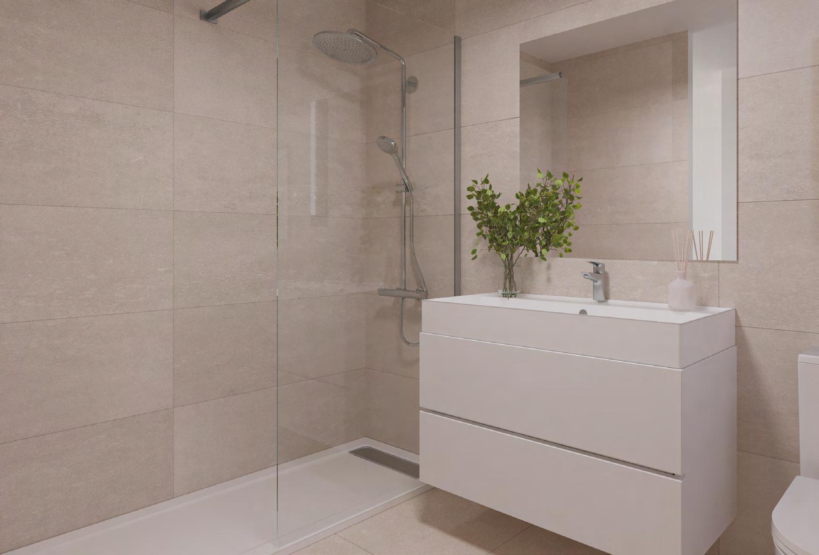 The walls of both the master and secondary bathrooms will be lined in ceramic tiling combining with porcelain stoneware floors.