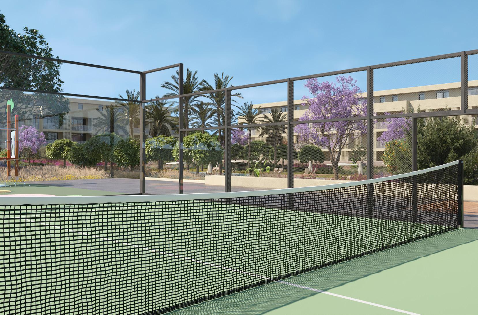 En las zonas comunes de L’Alqueria se puede disfrutar de la naturaleza pero también de todo tipo de comodidades como piscina, gimnasio, pista de pádel, club social y recarga de bicicletas y automóviles eléctricos.