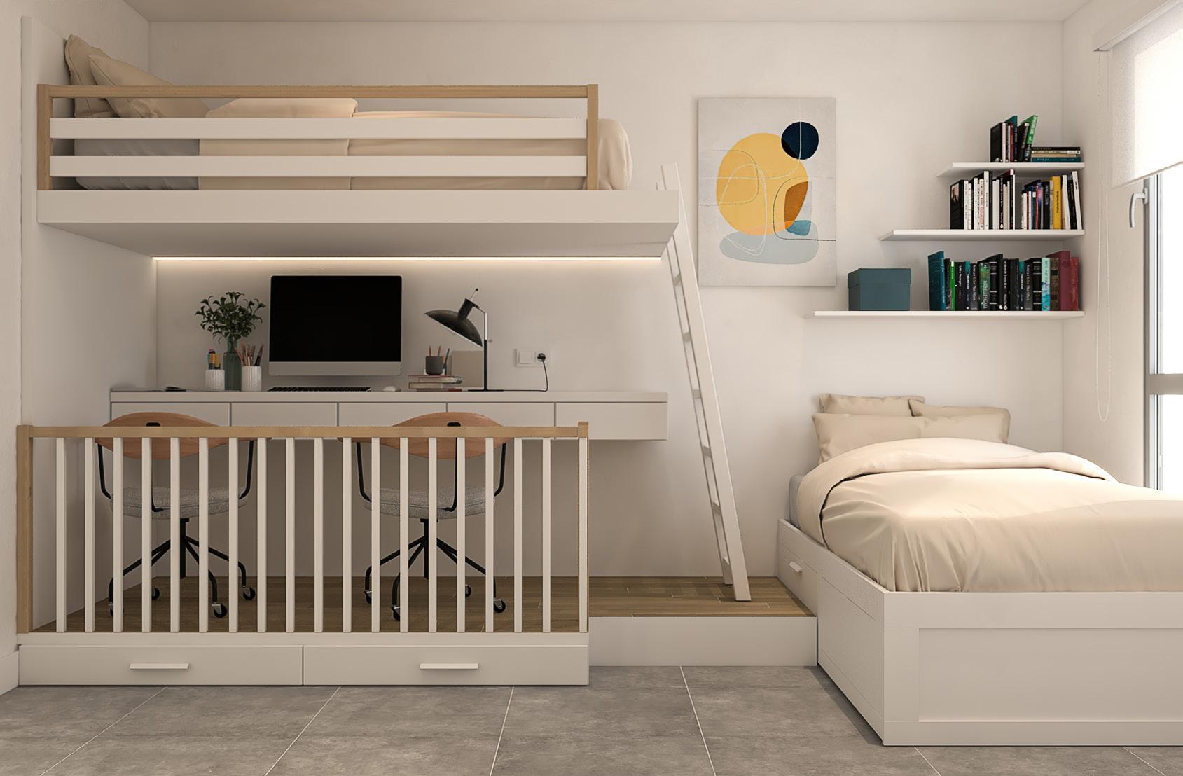 › Los armarios serán empotrados tipo block, con balda, maletero y puertas correderas con el mismo acabado que las puertas de paso.