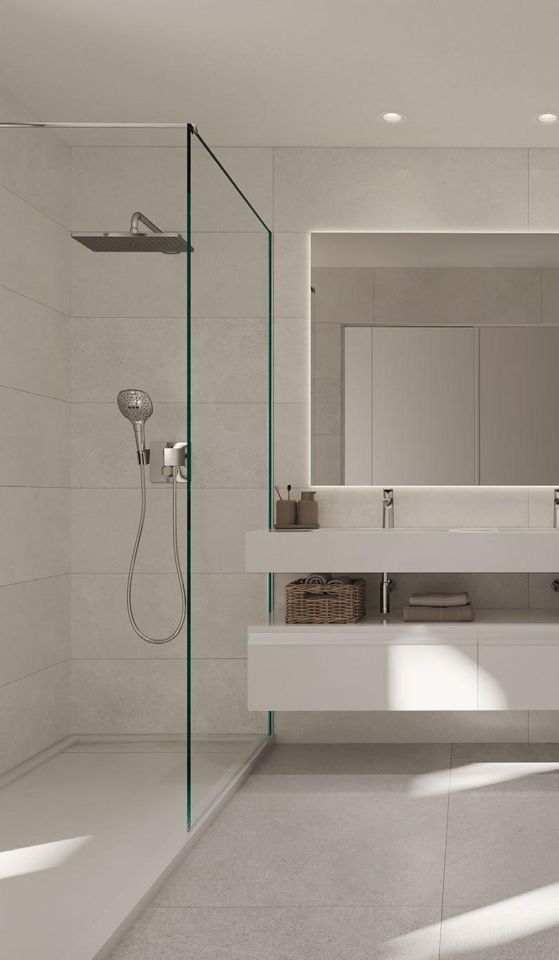 Las paredes de los baños, tanto principales como secundarios, irán revestidas de baldosa cerámica combinando con el solado de gres porcelánico.