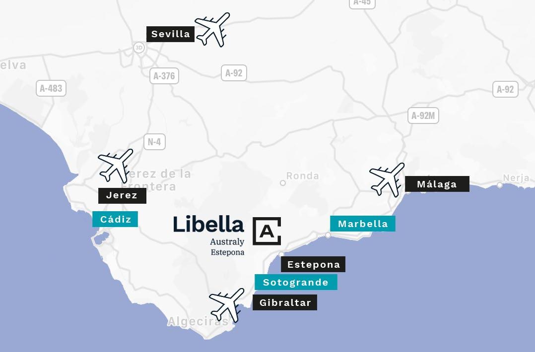 Gracias a la proximidad a los aeropuertos de Málaga y Gibraltar y a la estación de AVE malagueña cualquier destino nacional e internacional está a tu alcance.