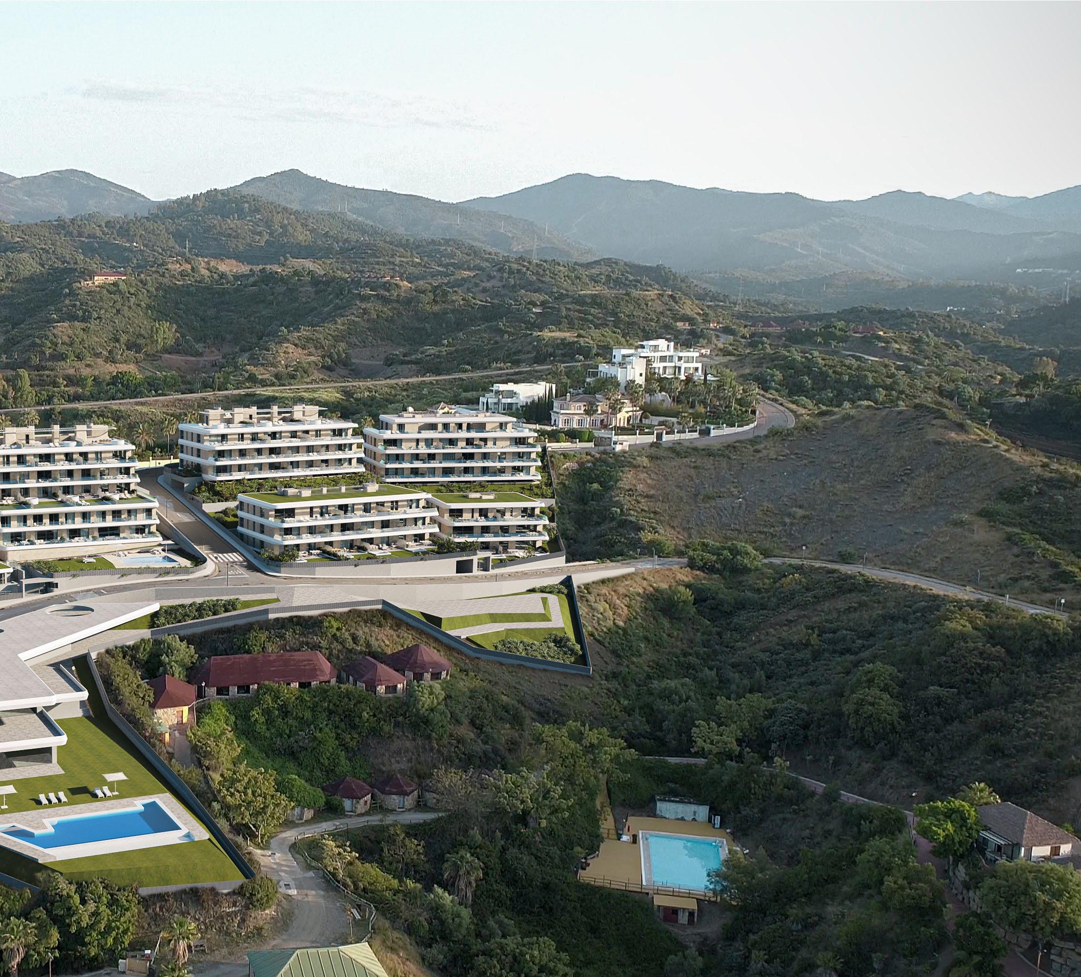 Contempla la vida entre el azul del cielo y el Mediterráneo. Te presentamos Libella, tu nueva vivienda en Estepona que se alza sobre una suave colina con magníficas vistas al mar y el valle.