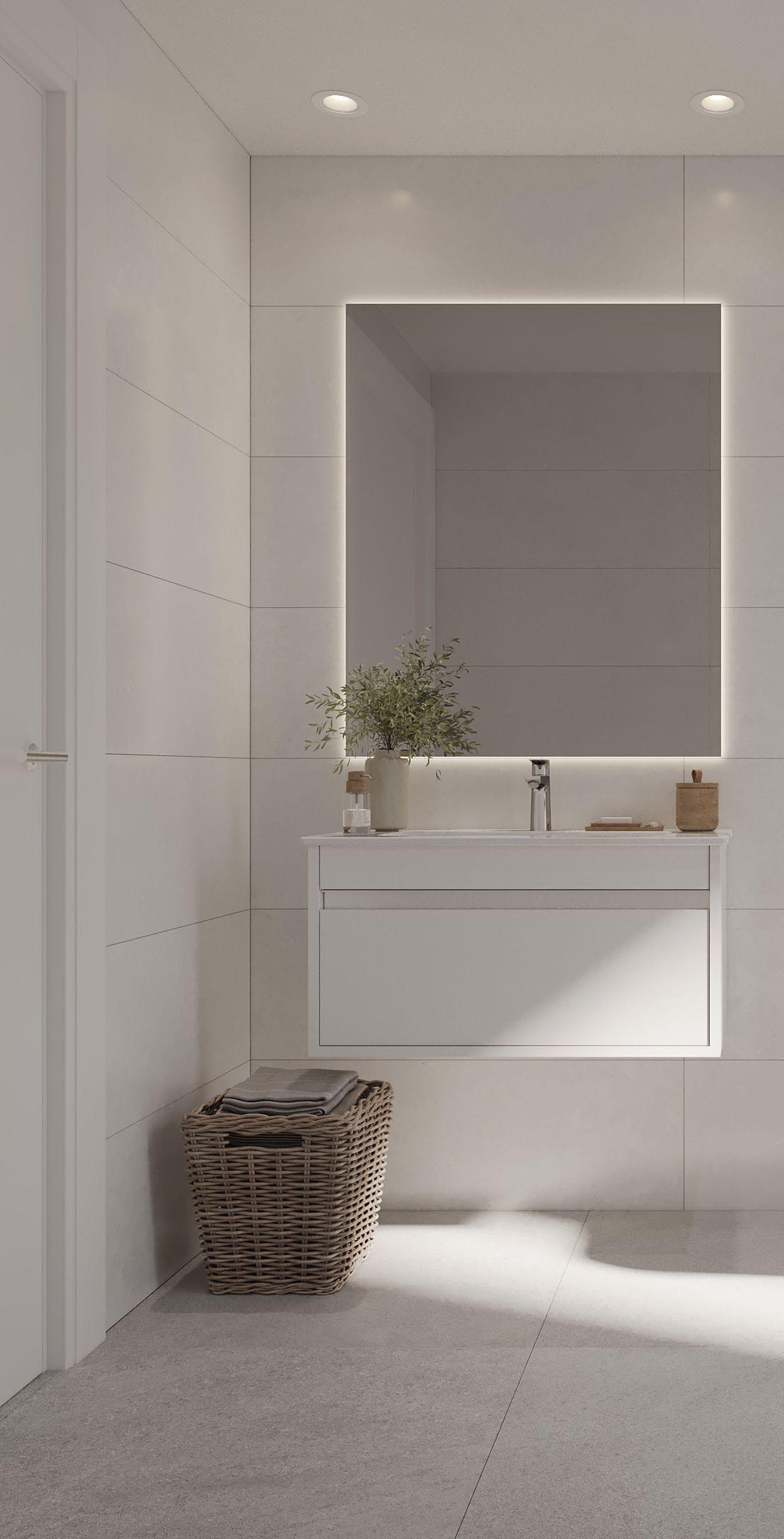 Además, el baño principal contará con lavabo cerámico con mueble y encimera de cuarzo compacto, así como inodoro suspendido.