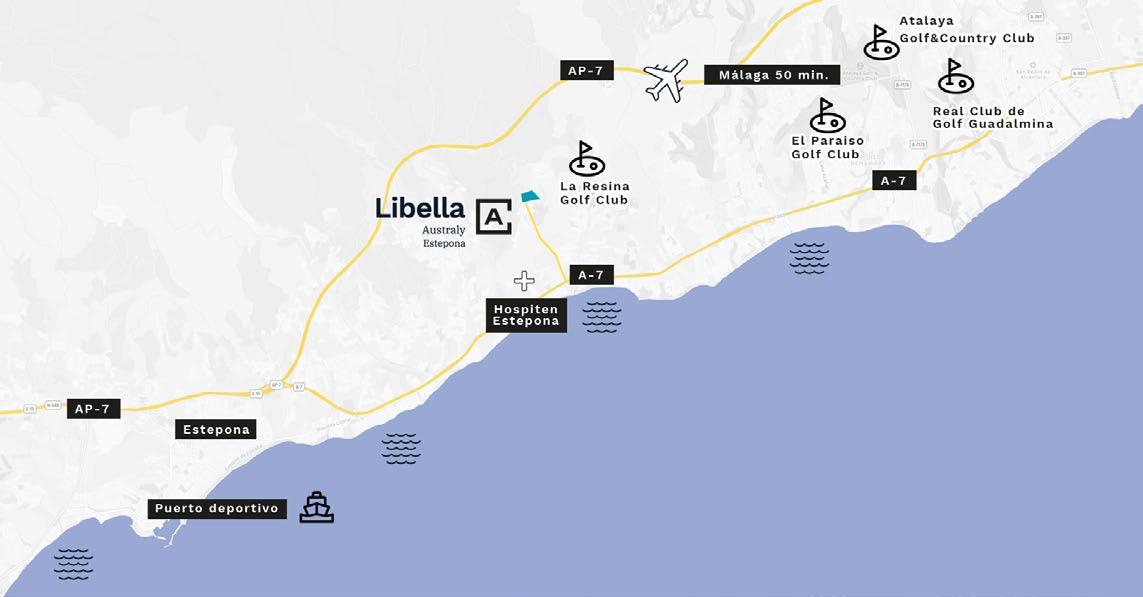 Su excelente ubicación permite que Libella esté conectada con la ciudad de Málaga a menos de una hora en coche a través de la A-7. Cosmopolita y llena de cultura, Málaga merece una visita obligada, siendo la capital de la provincia un centro cultural con más de 30 museos entre los que destacan el Museo Picasso, Carmen Thyssen y Centre Pompidou.