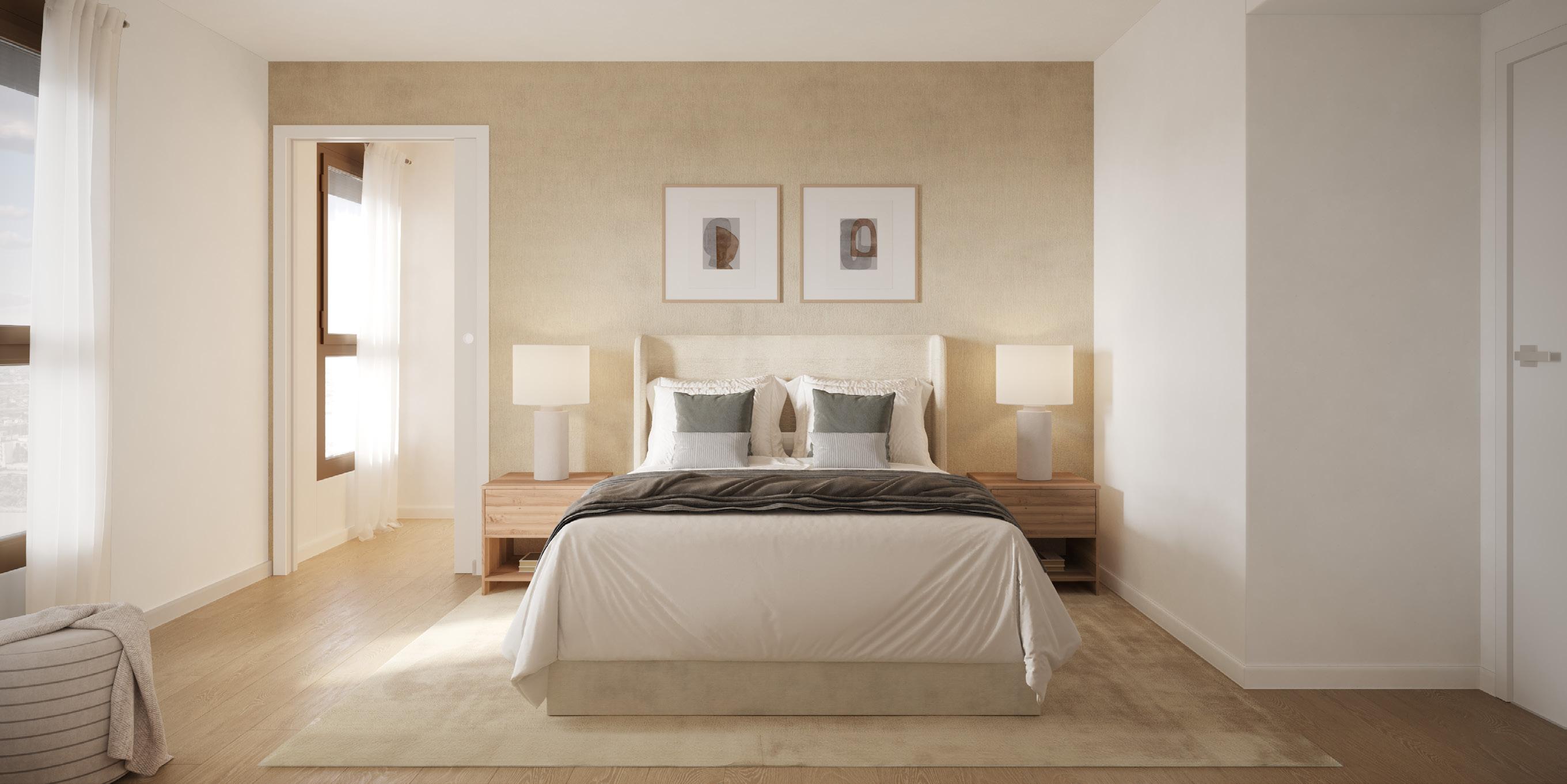 Dossier: Las imágenes mostradas son una aproximación lo más fiel posible del resultado final del inmueble proyectado, pudiendo darse modificaciones derivadas de exigencias técnicas o jurídicas, siempre que estén justificadas y no supongan una alteración sustancial del objeto y/o calidad de los materiales. El mobiliario mostrado no está incluido, siendo el equipamiento del inmueble el indicado en la memoria de calidades.