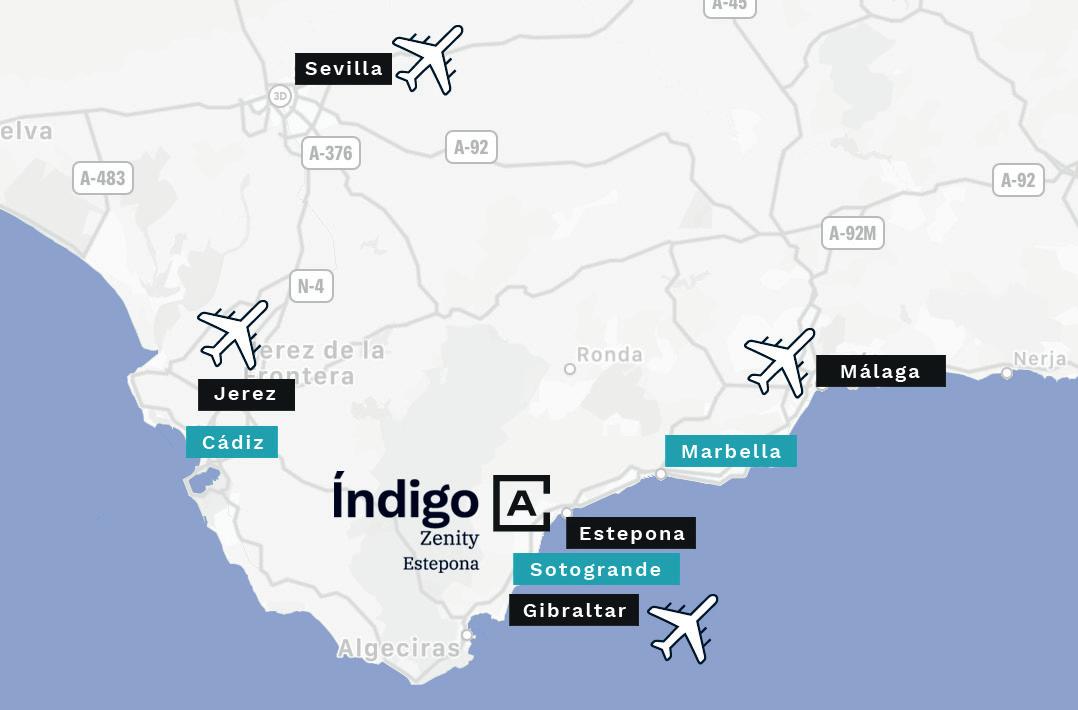 Gracias a la proximidad a los aeropuertos de Málaga y Gibraltar y a la estación de AVE malagueña cualquier destino nacional e internacional está a tu alcance.