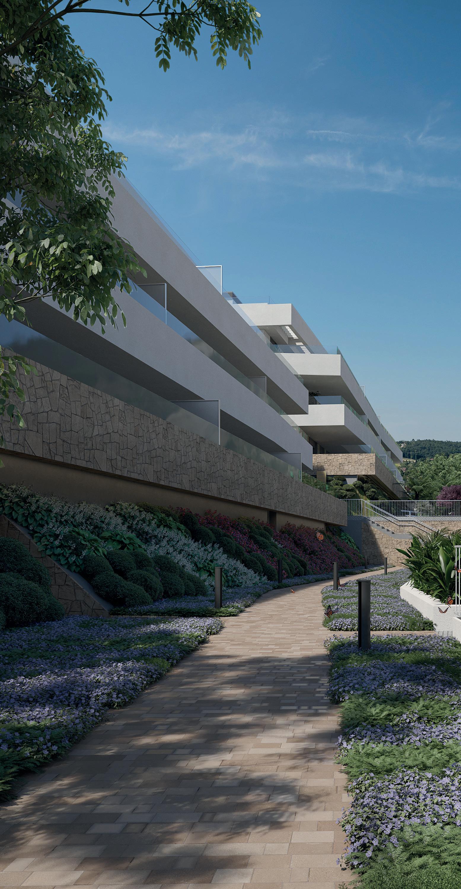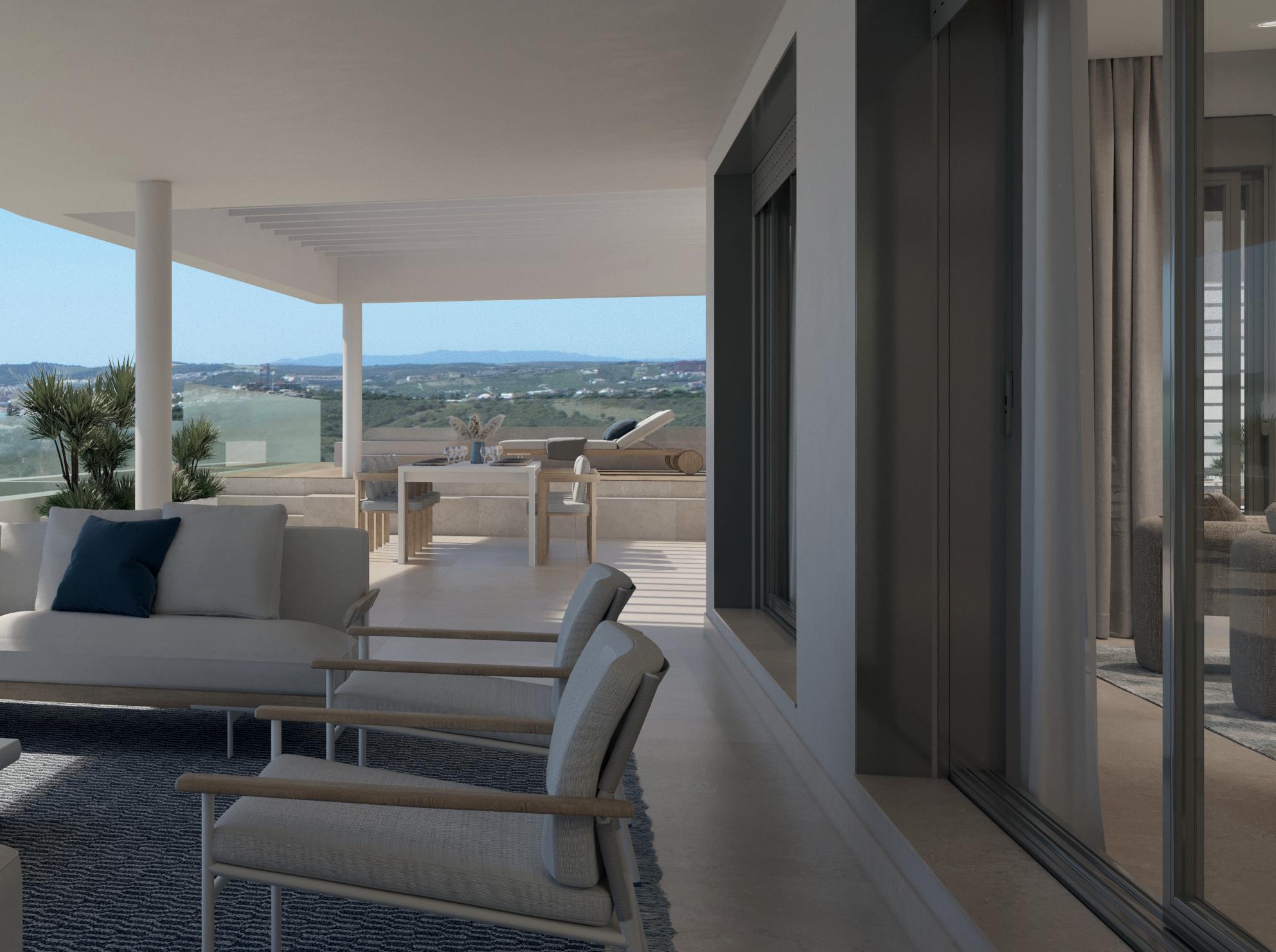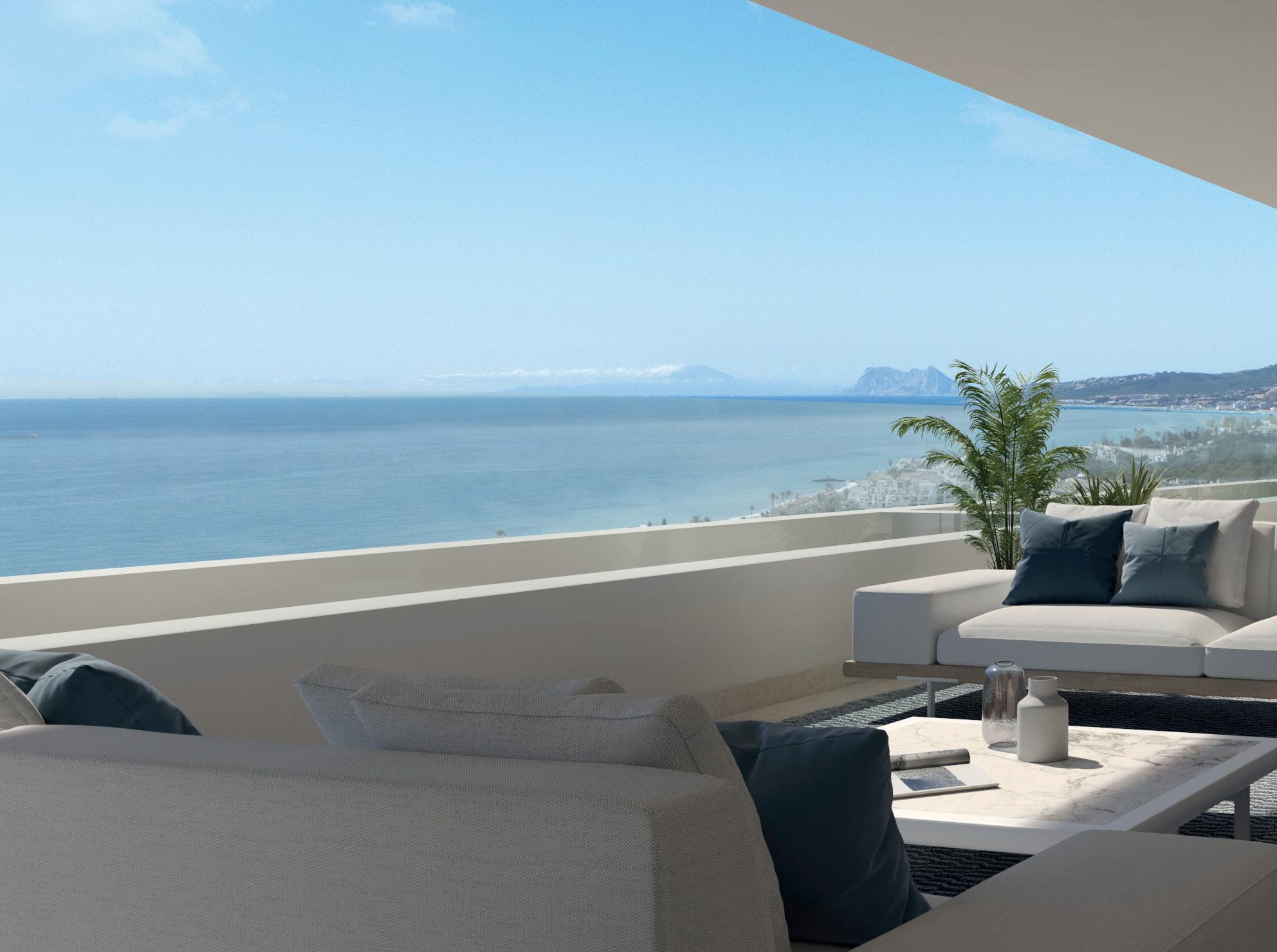 La promoción Índigo, se alza sobre una suave colina con espectaculares vistas, muy cerca del mar y en la zona oeste de Estepona. Una urbanización exclusiva de 33 viviendas con amplios espacios interiores, grandes terrazas, vistas espectaculares, áreas comunitarias, piscinas y zona club.