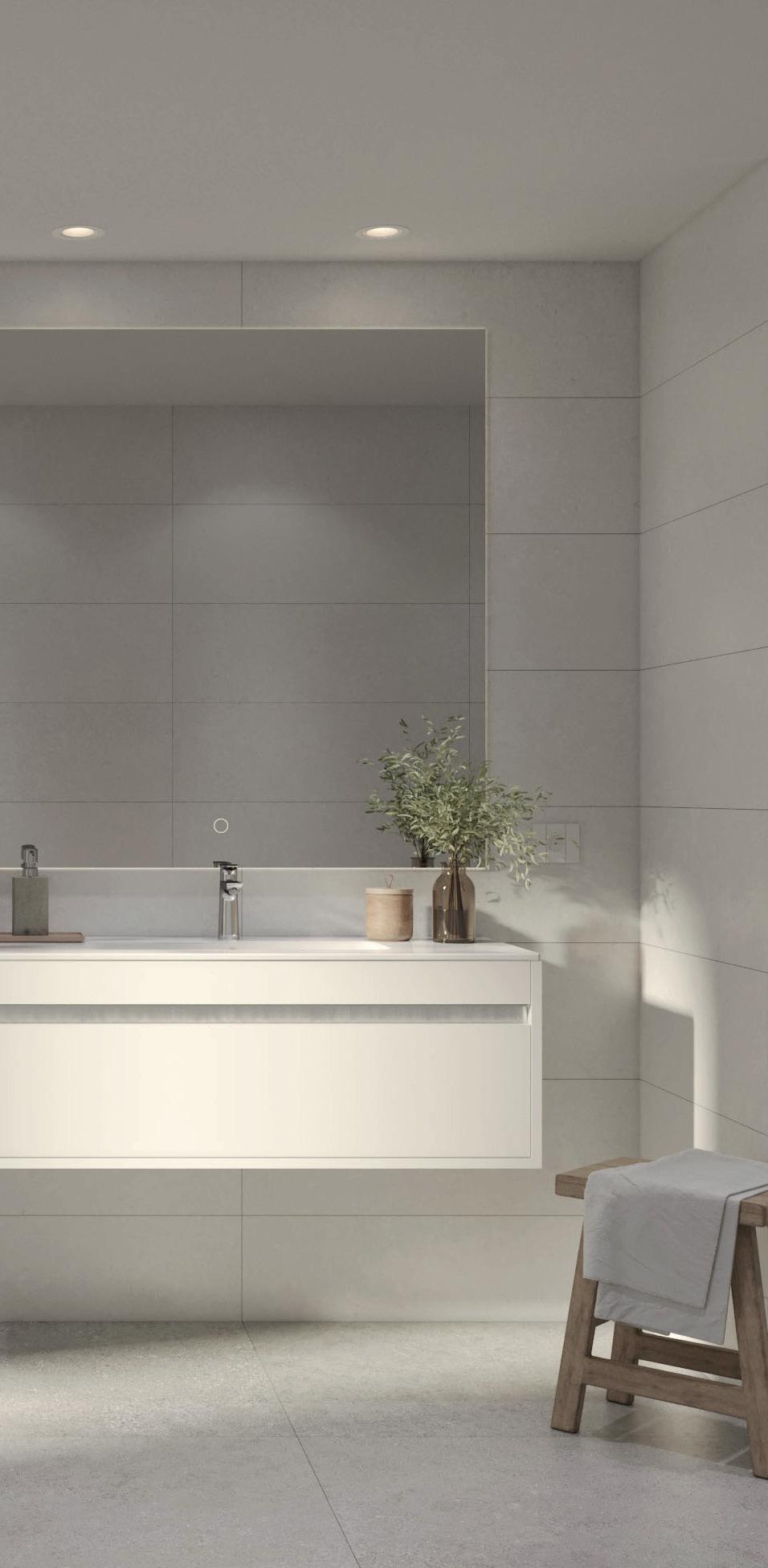 Las paredes de los baños, tanto principales como secundarios, irán revestidas de baldosa cerámica combinando con el solado de gres porcelánico.
