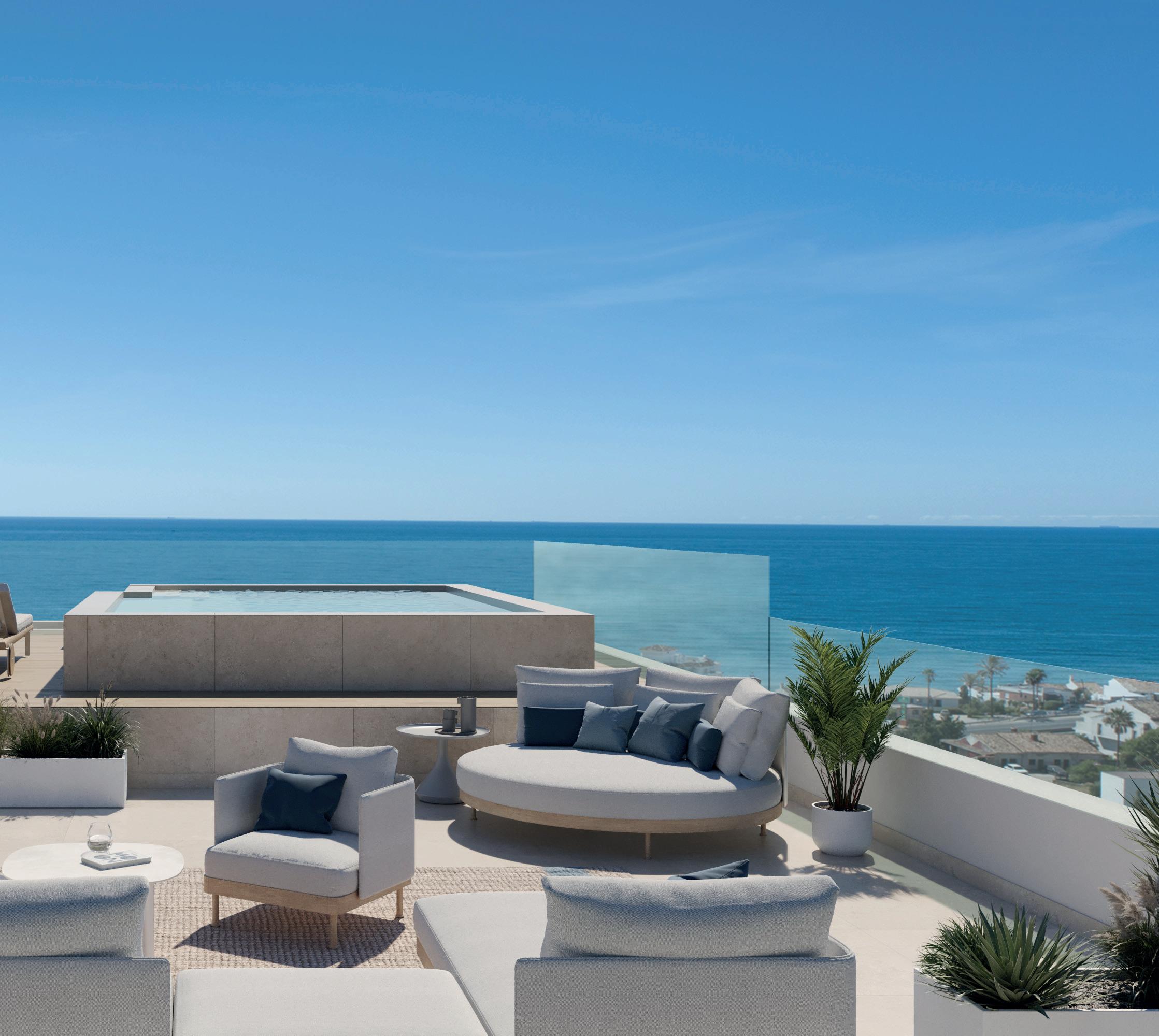 Índigo es una promoción premium con terrazas y vistas al mar. Un total de 33 viviendas de 2, 3 y 4 dormitorios desarrolladas en un edificio de altura contenida para mantener la mayor estética y privacidad.