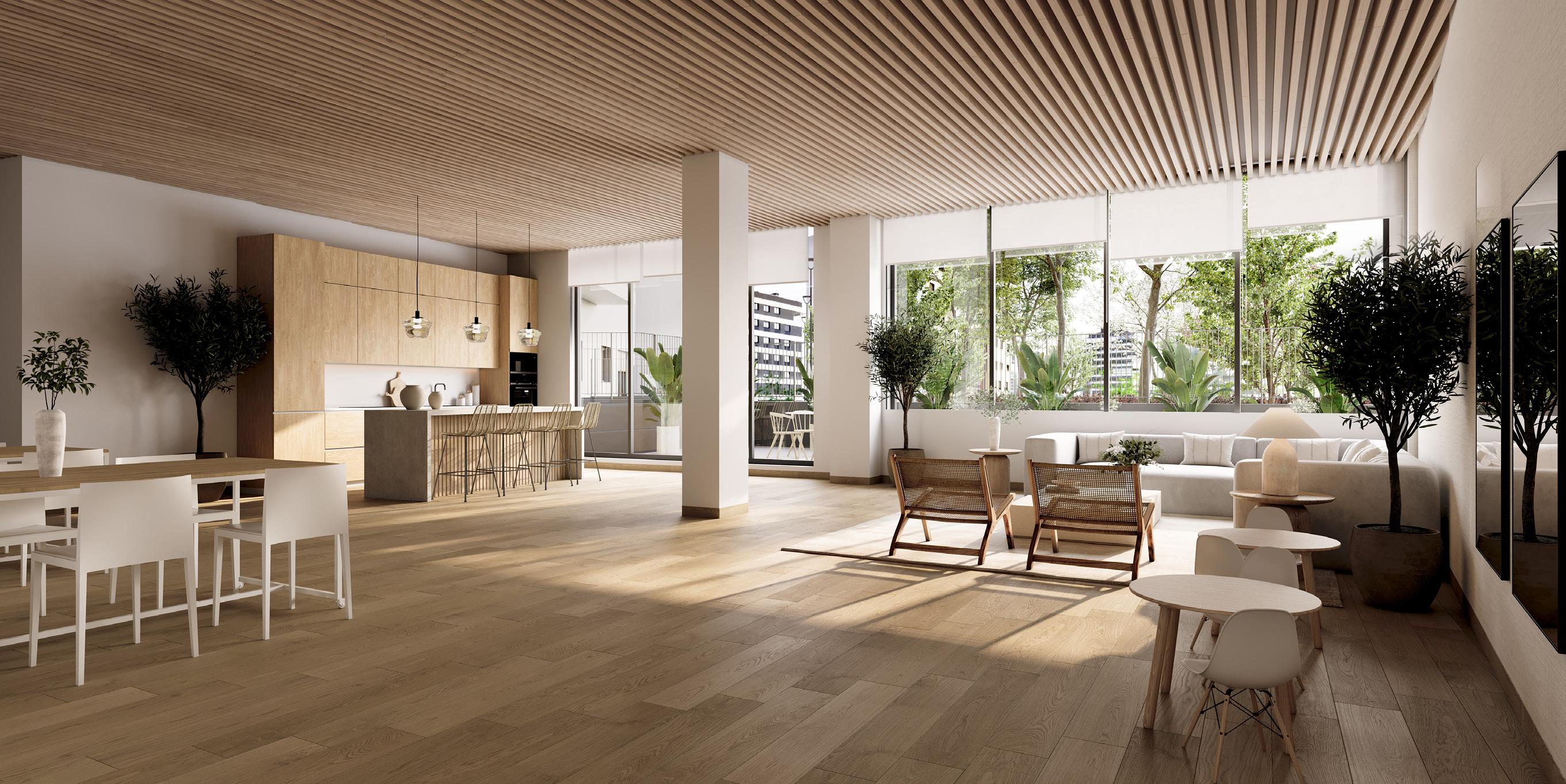 En Satia tanto los suelos como las paredes de las zonas comunes interiores ofrecerán una combinación de distintos materiales de primera calidad según la zona.