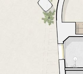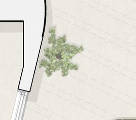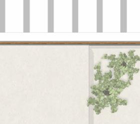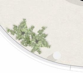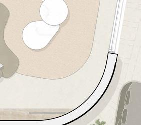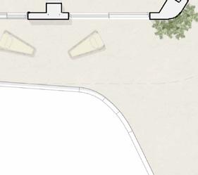 Zona ajardinada con plantaciones de especies mediterráneas de bajo consumo de agua, adaptadas al clima local. Pavimento de tarima composite WPC en zonas de estancia. Pavimento de caucho, césped sintético y grava en zona de juegos. Dotación de bancos de madera o de hormigón.