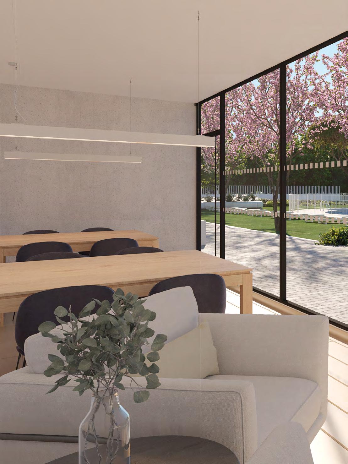 Zimara recoge todas las instalaciones que buscas para los tuyos: dispone de piscina infantil y de adultos con carril de nado, área de juegos exterior para los más pequeños, aparcamiento exterior de bicicletas, gimnasio y gastroteca con una ludoteca infantil al lado para no perder de vista a los más pequeños mientras comes o cenas con tus amigos. Además, tendrás una sala que podrás usar como espacio de coworking para trabajar, como sala de lectura o como despacho para recibir a tus clientes o visitas profesionales. También contarás con una pantalla exterior hacia zona de graderío que actúa como cine de verano para que disfrutéis vuestras películas favoritas.