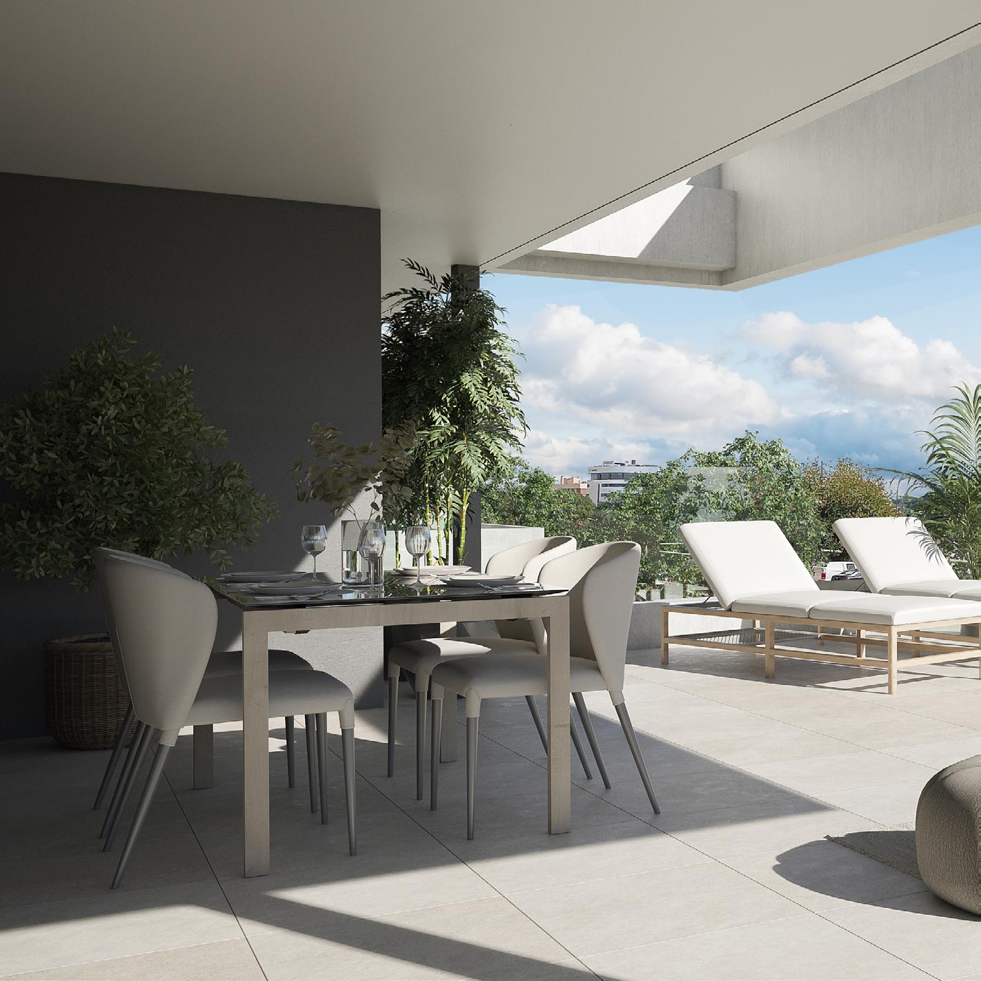 Las terrazas contarán con un sistema de evacuación de agua. Para que la seguridad sea máxima, estos espacios al aire libre se pavimentarán con gres antideslizante de primera calidad y contendrán un rodapié del mismo material en las zonas que se requiera.