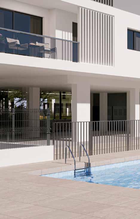Para que la seguridad sea máxima, la terraza de tu vivienda se solará en gres antideslizante especial para exteriores. Todas las terrazas incluirán punto de iluminación y luminaria, toma de corriente y toma de agua en soláriums de planta ático.