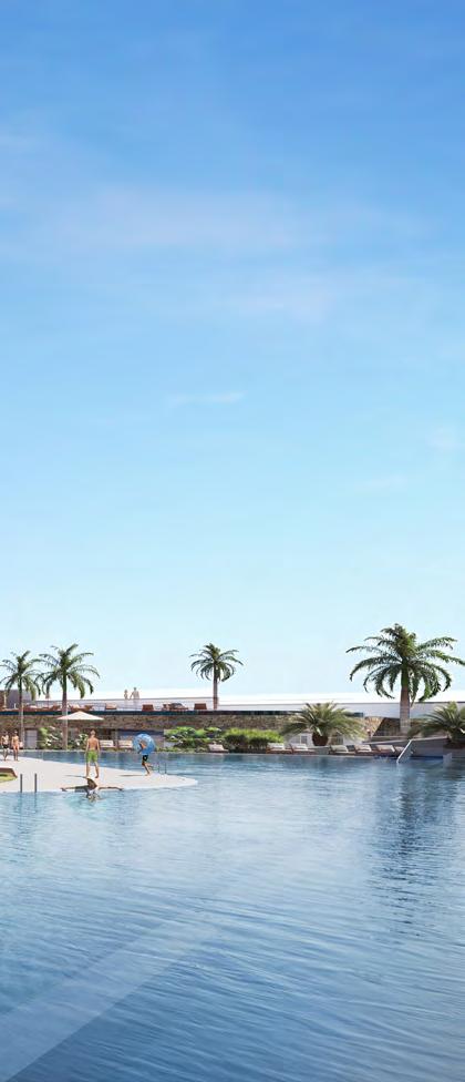 Piscine de 1 440 m² de surface d’eau avec un grand solarium. La piscine sera à débordement, face à l’océan et à l’île de La Gomera.