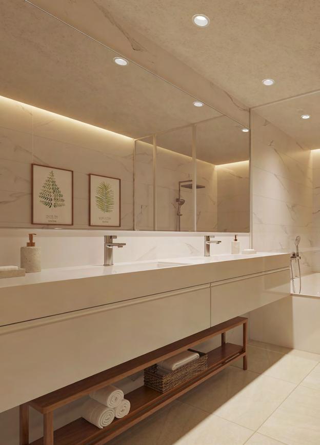 La salle de bains principale sera équipée d’un double lavabo en céramique avec robinetterie intégrée et meuble suspendu. Les toilettes seront compactes et suspendues avec un système de chasse d’eau dissimulé pour ajouter une touche de design à l’ensemble.