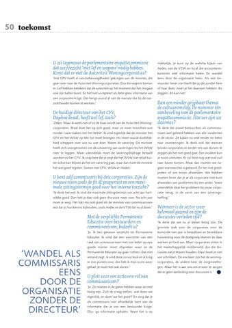 moet je weg. Het lijkt mij ook goed als de minister van commissarissen eist dat zij hun kennis bijhouden, zoals Aedes en de VTW dat nu al doen.’