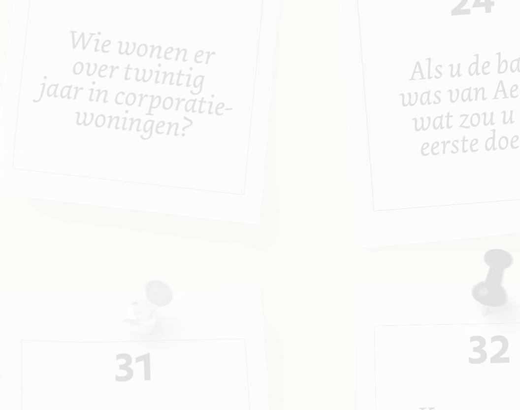 De situatie zorgt voor hoofdbrekens bij de verschillende corporatiebestuurders. ‘Den Haag is een grote stad waar mensen graag naartoe trekken, alleen is de stad al bijna helemaal volgebouwd’, zegt Ria Koppen van woningcorporatie Haag Wonen (22.000 sociale huurwoningen). ‘Er is weinig plaats voor nieuwbouw en dat zorgt voor lange wachtlijsten. We merken het ook in de gesprekken met onze stakeholders. Betaalbaarheid was altijd aandachtspunt nummer één, maar dat is snel omgeslagen naar beschikbaarheid.’