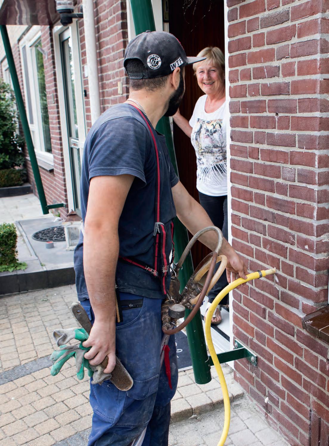 eigenlijk al heel snel gewend aan de integrale werkwijze’, vertelt Sweringa terwijl ze nog een kop koffie inschenkt. Ze starten altijd met een probleemanalyse, bespreken die met de huurdersorganisatie en houden meestal ook een enquête. ‘Dan krijg je een gesprek over wat mensen echt belangrijk vinden.’ Beslissingen nemen gaat volgens het principe People, Planet, Profit. Dit houdt in dat ze, naast de bedrijfsecomische aspecten, kijken naar de meerwaarde voor bewoners en het milieu. Deze denkwijze verwacht OFW ook van aannemers; scoren zij goed op die P’s, dan krijgen zij vaker een uitnodiging voor een aanbesteding. ‘Dan gaat het bijvoorbeeld ook over de inzet van leerlingen, tevredenheid van bewoners, de woon-werkafstand van werknemers en het gebruik van milieuvriendelijke verf.’ Bij de kapper of in de supermarkt spreken huurders Sweringa soms spontaan aan omdat ze zo blij zijn met hun gemoderniseerde huis. ‘Mensen zien bij elkaar wat het resultaat is van onze aanpak. Dan vragen ze ons: wanneer zijn wij aan de beurt? Veel bewoners leveren aan het begin van een informatieavond al een akkoordverklaring in.’ En wat voor huurders fijn is: er staat geen extra huurverhoging tegenover de lagere energiekosten, een jaarlijkse besparing van zo’n 350 euro. Essentieel in het meekrijgen van mensen is dat zij voelen dat je voor hen bezig bent, benadrukt Sweringa. Ze gebruikt daarom in de communicatie geen ingewikkelde termen als ‘innovatie’ en ‘experiment’.