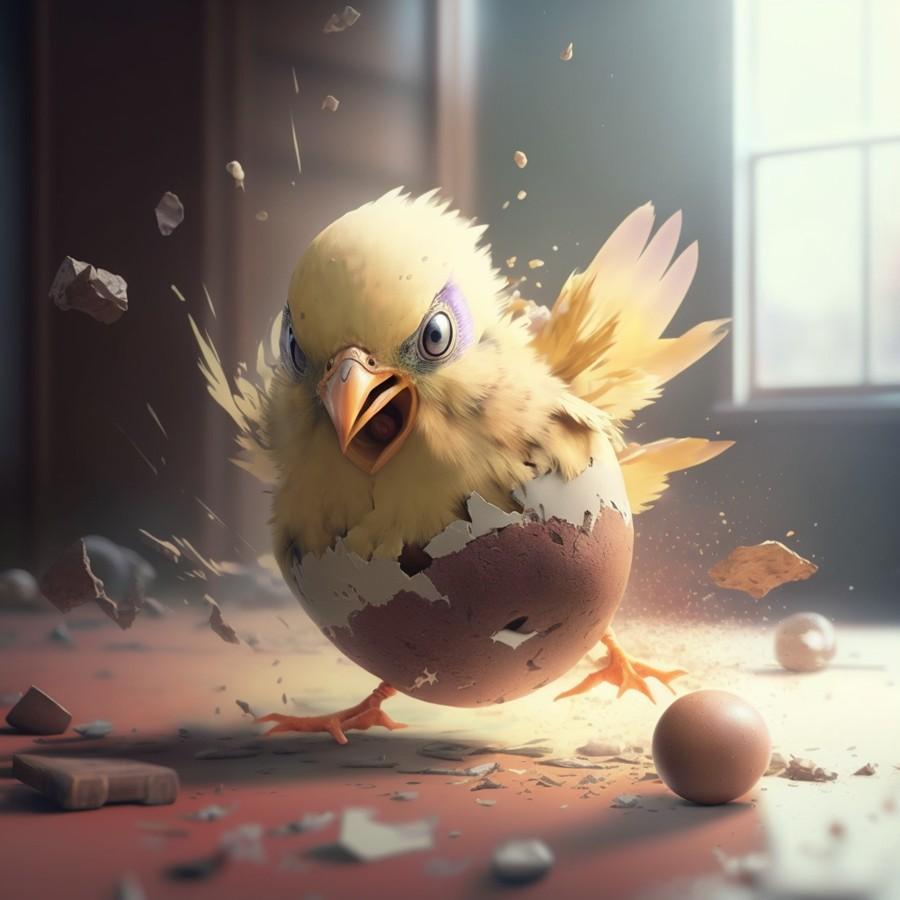 Le poussin courait en toute vitesse dans toutes les directions. Il est devenu un gros poussin.