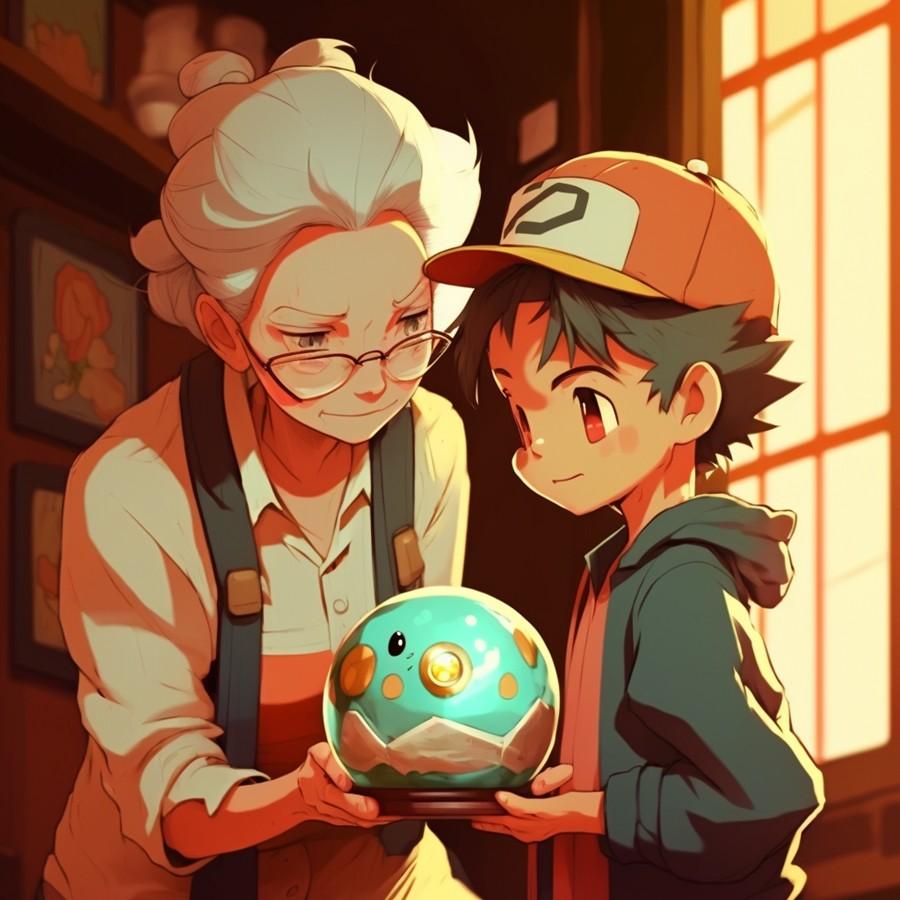 Ash, fais attention à cet œuf mon petit fils Comptes sur moi Mamie!