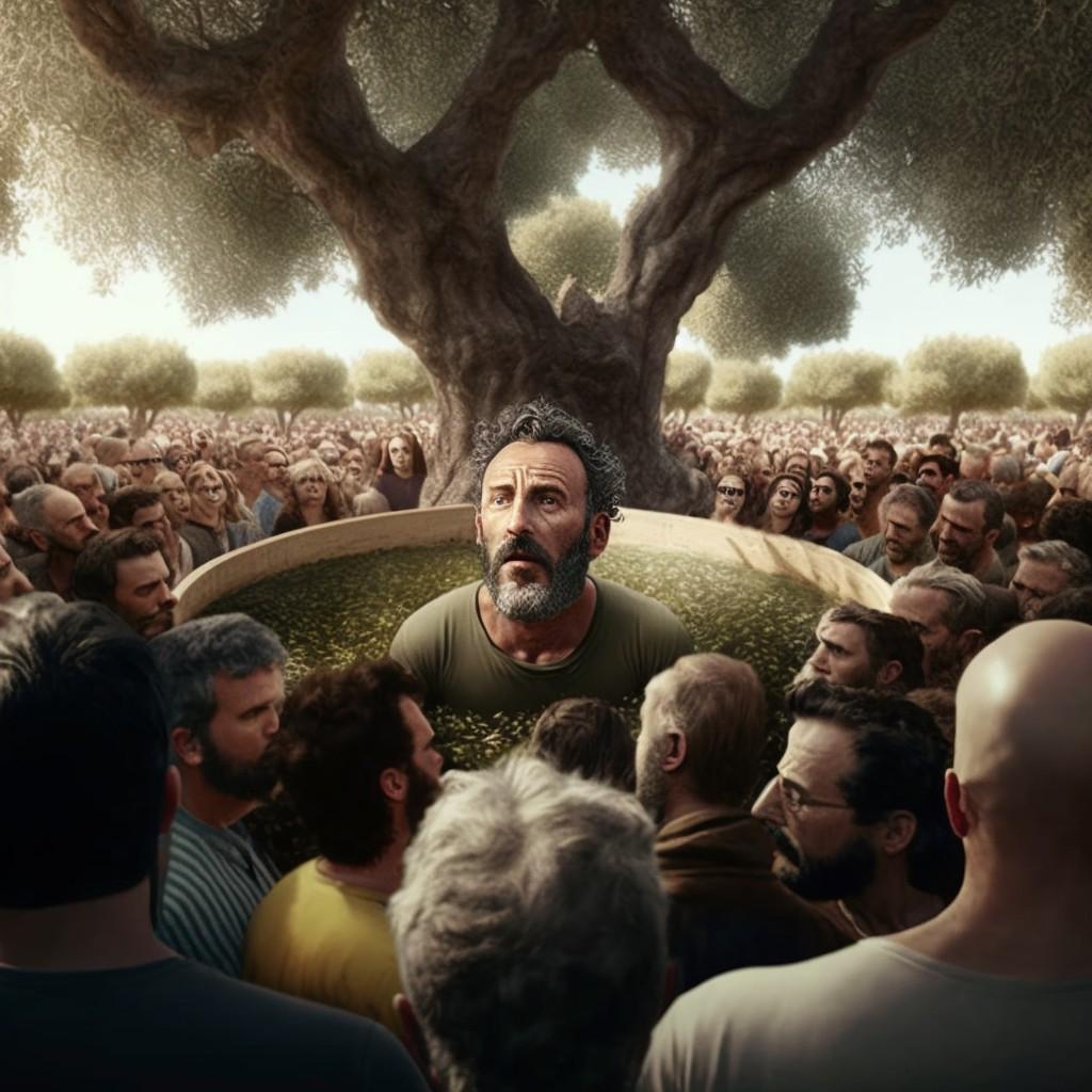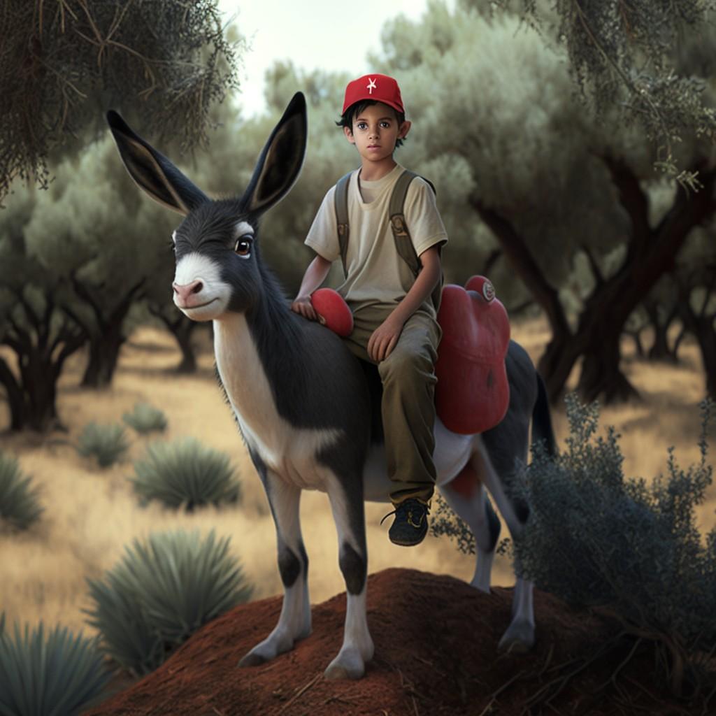 Soudain, une petite branche d’olivier sortait de la jambe de l’âne et commençait à grandir, jusqu’à ce que cela couvre tout son corps.