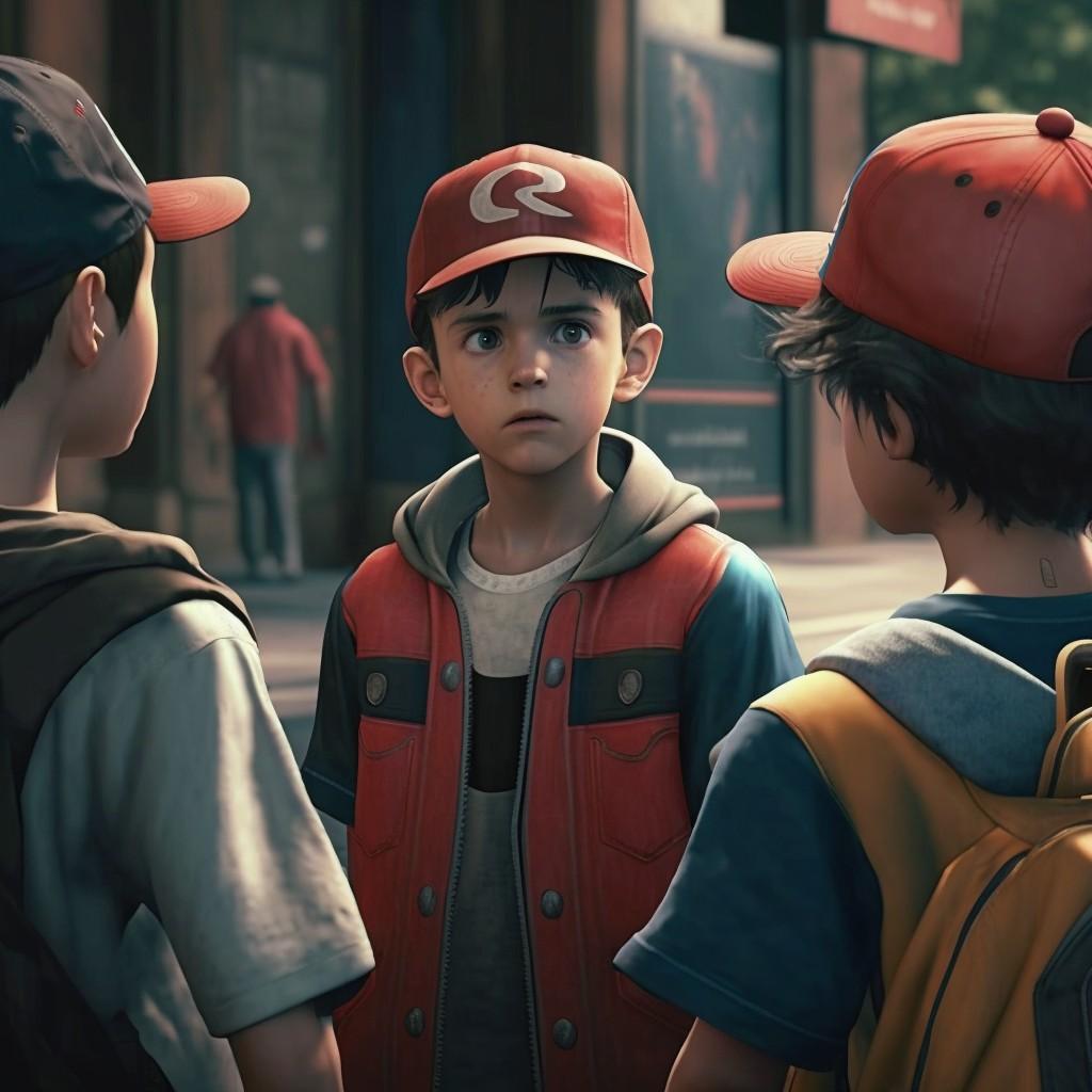 garçons du quartier ont vu Ash portant un œuf dans la main. Ils lui ont bloqué la voie.