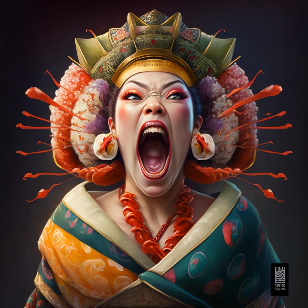 Effectivement, Ash commençait à manger les Makis et les Sashimis, jusqu’à ce que la reine des Sushis apprenne la nouvelle. Elle criait avec toutes ses forces : “Arrêtez cet étranger!”