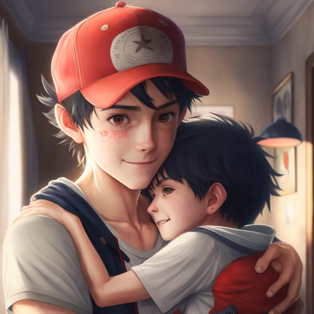 Ash était tout content. Son père aussi. Je suis tellement content Papa!