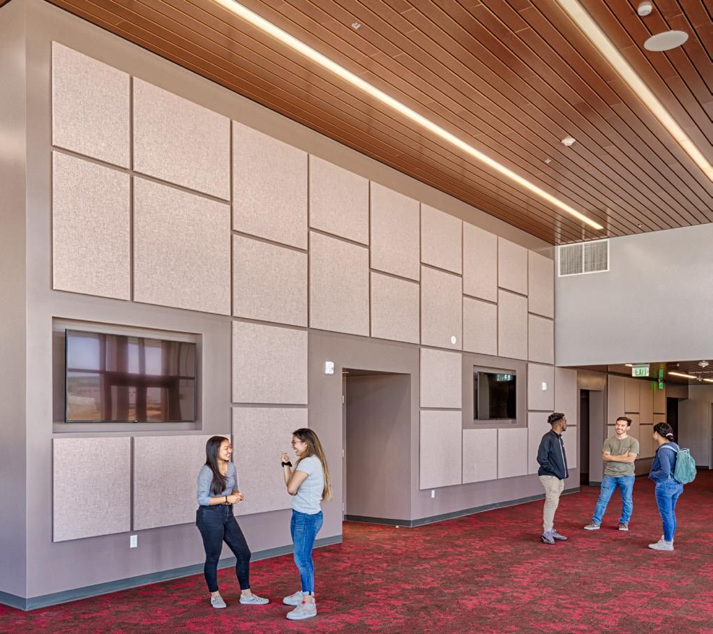 This two-story music building features four separate ensemble rooms for orchestra, percussion, choir, and band programs, along with individual practice music rooms and a faculty office. The challenge of this project was to fit the facilities necessary for an exceptionally large program on a very tight footprint. The result is a very efficient layout while providing acoustic isolation between different music programs. This building is strategically located with a close proximity to the existing performing arts center at the front of the campus, and connected to the main student quad in the back; thus defining a portal to the campus.