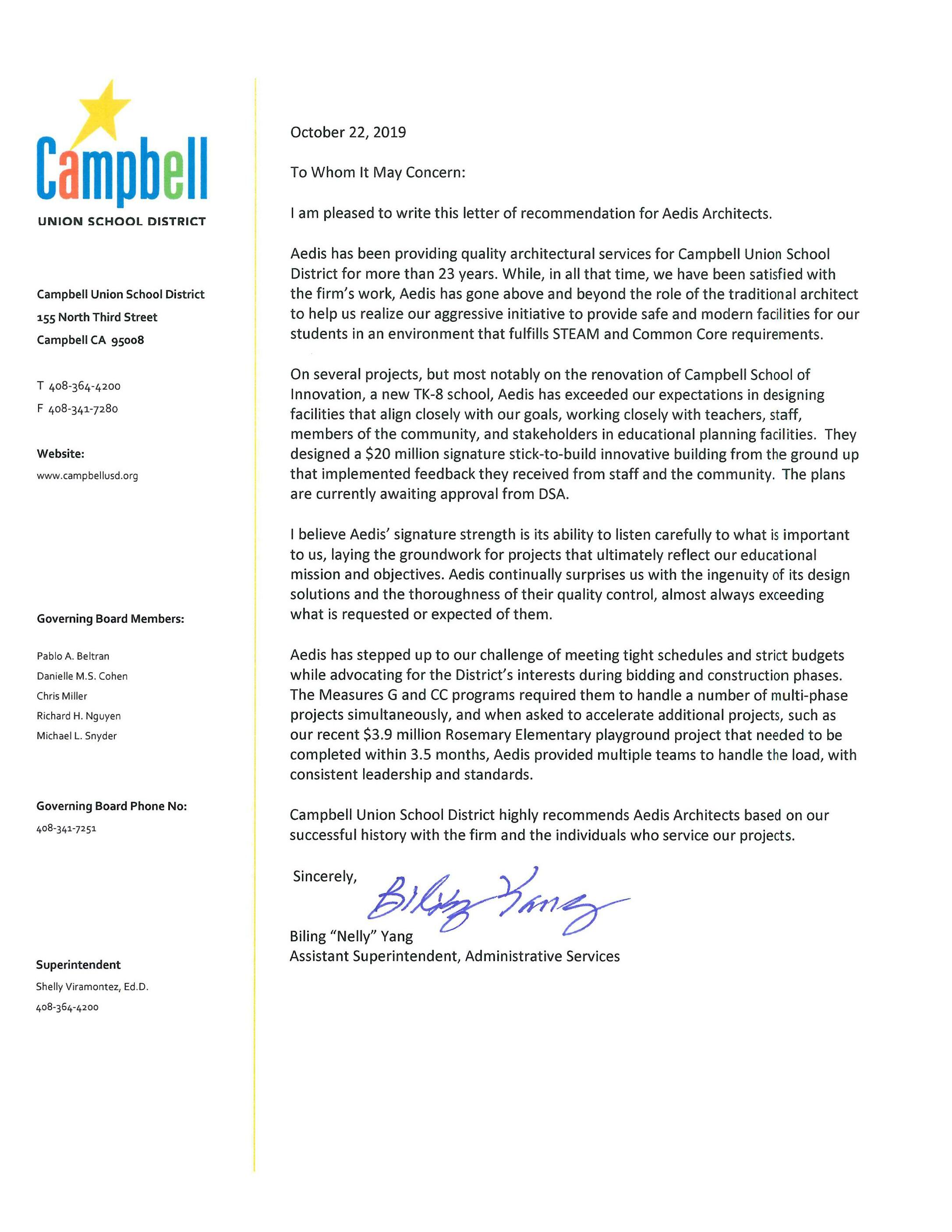 I am pleased to write this letter of recommendation for Aedis Architects. Over the past 15 years I have worked on a wide variety of projects with the Aedis team ranging from small painting projects to entire campus replacements.