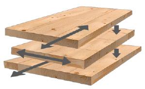 CLT is an engineered wood panel typically consisting of three, five or seven layers of dimensional lumber. Kiln-dried boards are layered perpendicular to one another and then glued. This cross lamination provides dimensional stability, strength and rigidity.