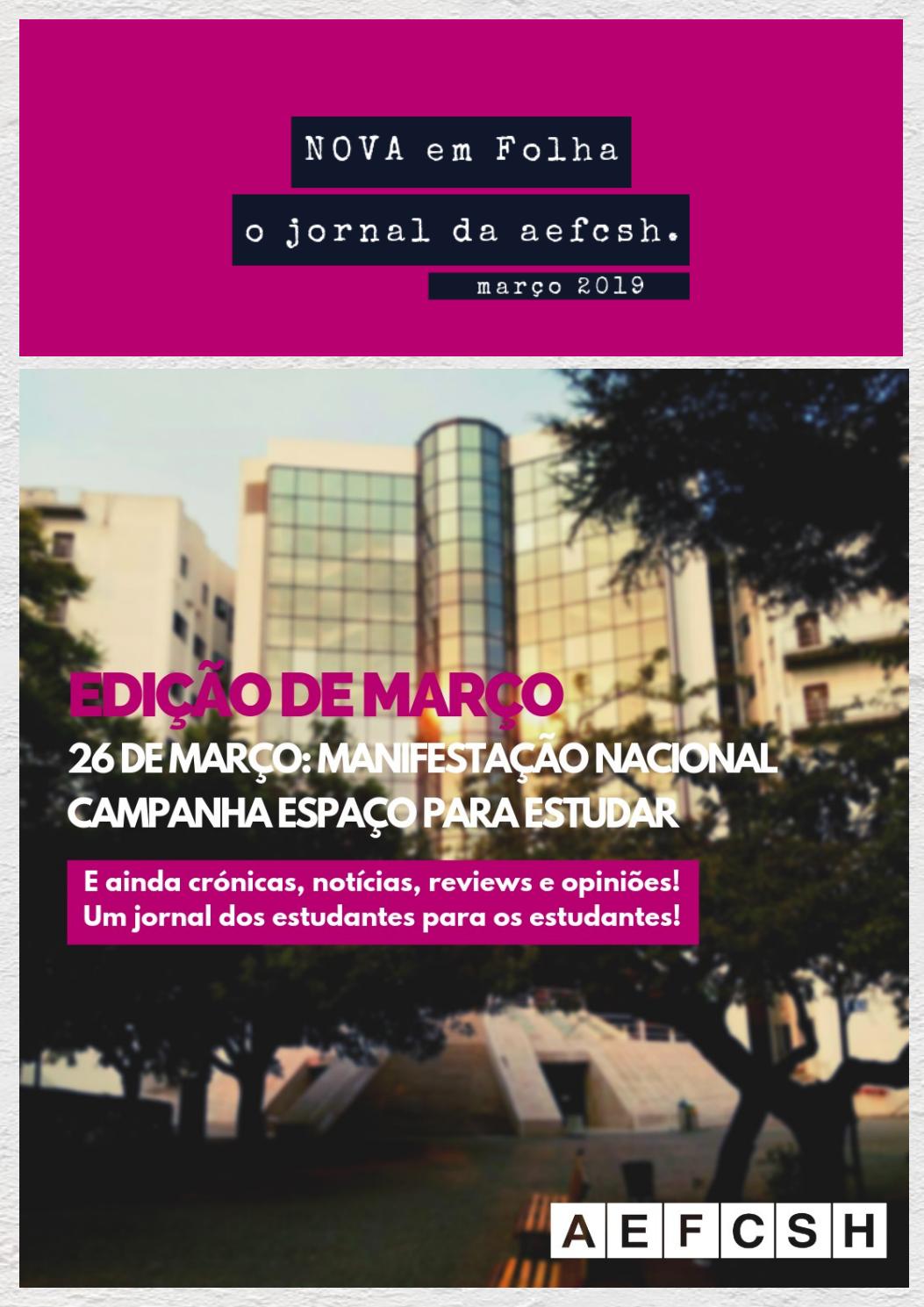 A edição de Março do jornal «NOVA em Folha» da AEFCSH já saiu! A recolha de submissões e propostas está sempre aberta. Se quiseres as tuas...